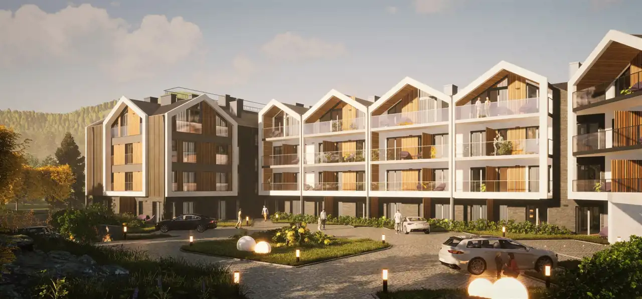 Apartamenty Belle View to nowy budynek apartamentowy w samym centrum Szklarskiej Poręby tuż przy nowo budowanym deptaku, który znajduje się zaledwie 250 metrów od budynku.