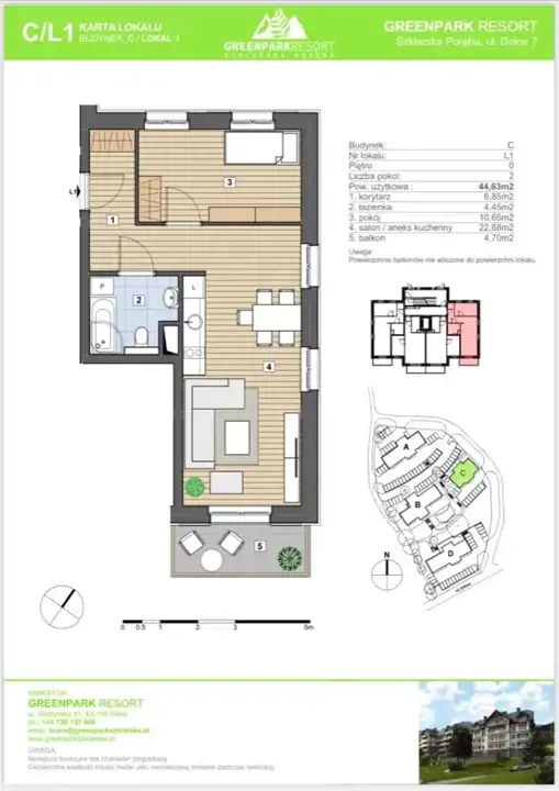 Dostępne są również inne apartamenty: parter - 37,30 m2, parter - 44,63, parter - 43,72,