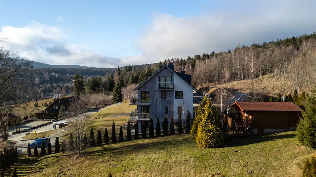 Apartament położony w kameralnym kompleksie budynków w Szklarskiej Porębie to propozycja dla osób, które szukają połączenia nowoczesnej architektury, górskiego klimatu i realnej wartości inwestycyjnej. To miejsce stworzone zarówno do komfortowego wypoczynku, jak i do spokojnego, całorocznego użytkowania w jednym z najbardziej atrakcyjnych kurortów w Karkonoszach.