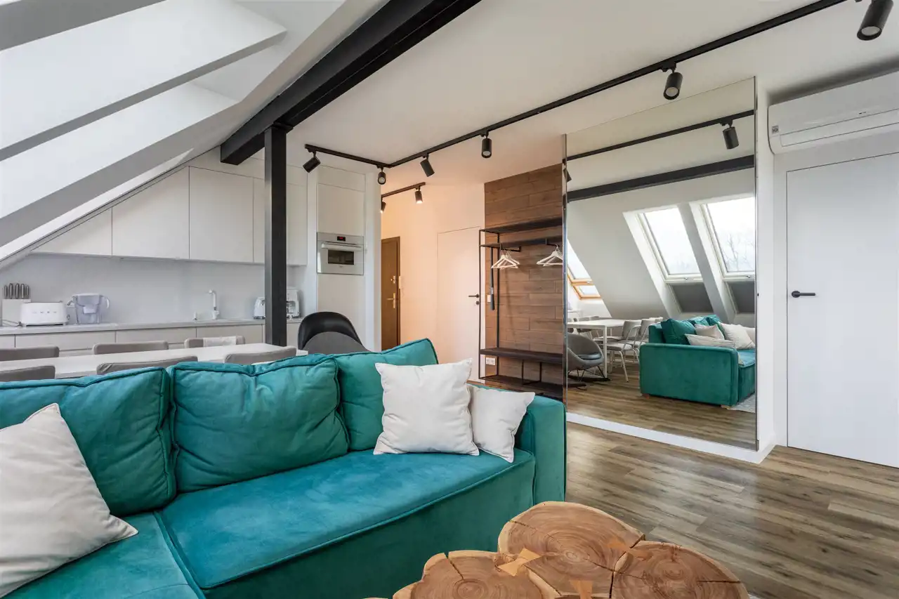 Apartament został w pełni wykończony i wyposażony przy użyciu materiałów wysokiej klasy. Stonowana kolorystyka, naturalne drewno, starannie dobrane detale oraz nowoczesne oświetlenie tworzą wnętrze eleganckie, a jednocześnie ciepłe i przyjazne. Lokal jest gotowy do użytkowania od pierwszego dnia - bez potrzeby ponoszenia dodatkowych nakładów finansowych.