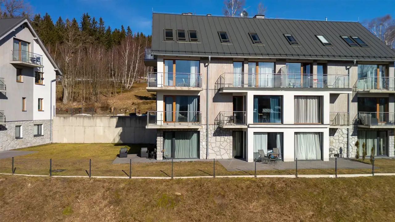 Apartament położony w kameralnym kompleksie budynków w Szklarskiej Porębie to propozycja dla osób, które szukają połączenia nowoczesnej architektury, górskiego klimatu i realnej wartości inwestycyjnej. To miejsce stworzone zarówno do komfortowego wypoczynku, jak i do spokojnego, całorocznego użytkowania w jednym z najbardziej atrakcyjnych kurortów w Karkonoszach.