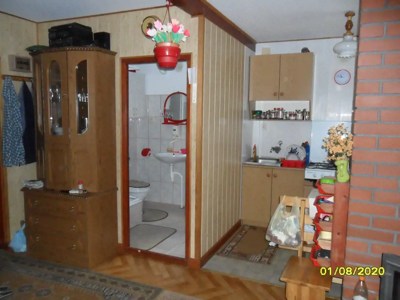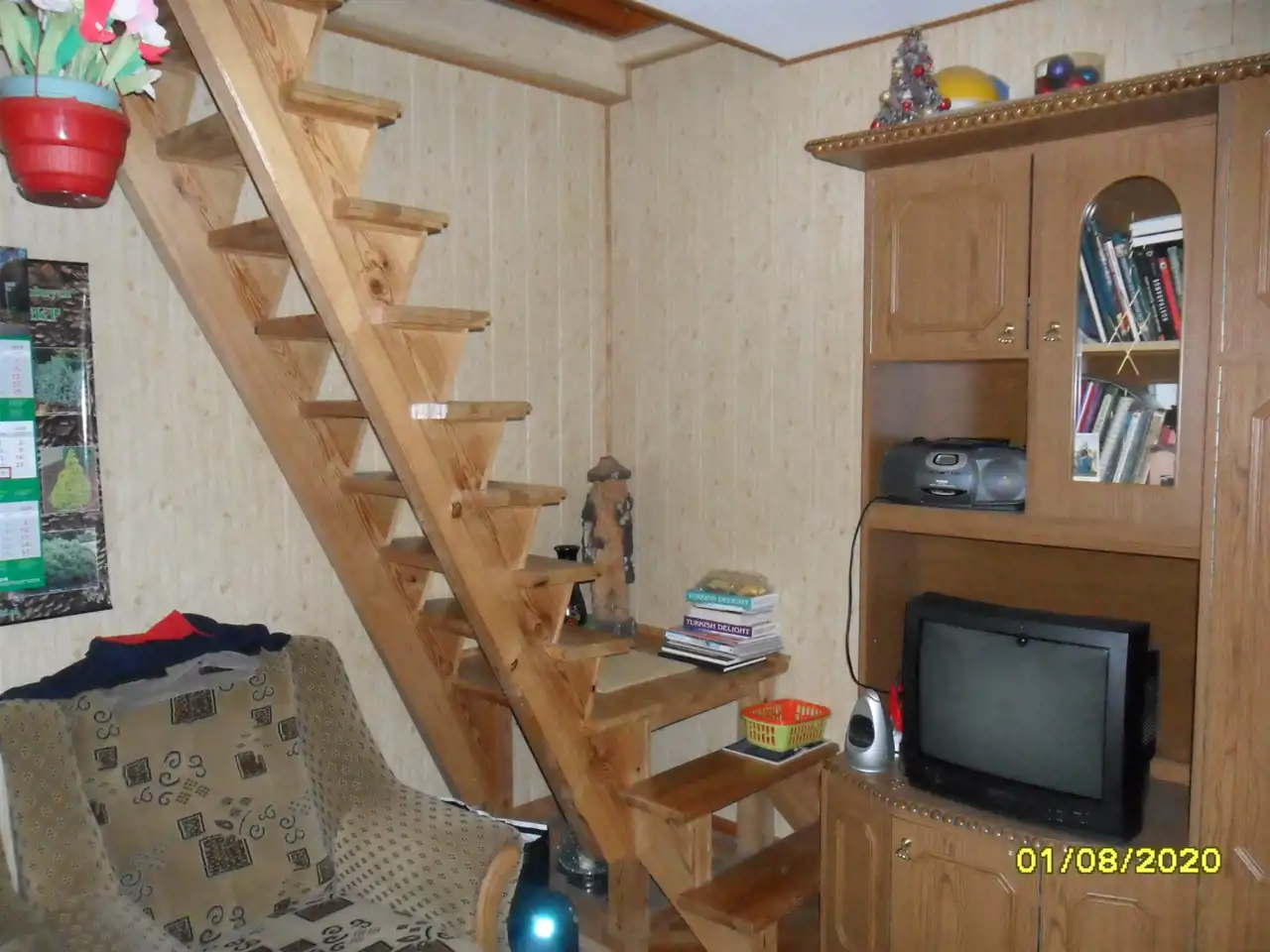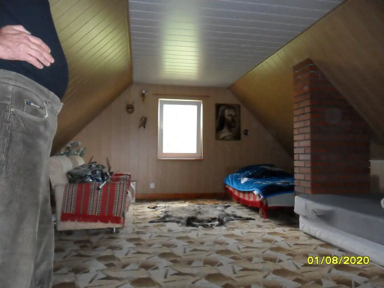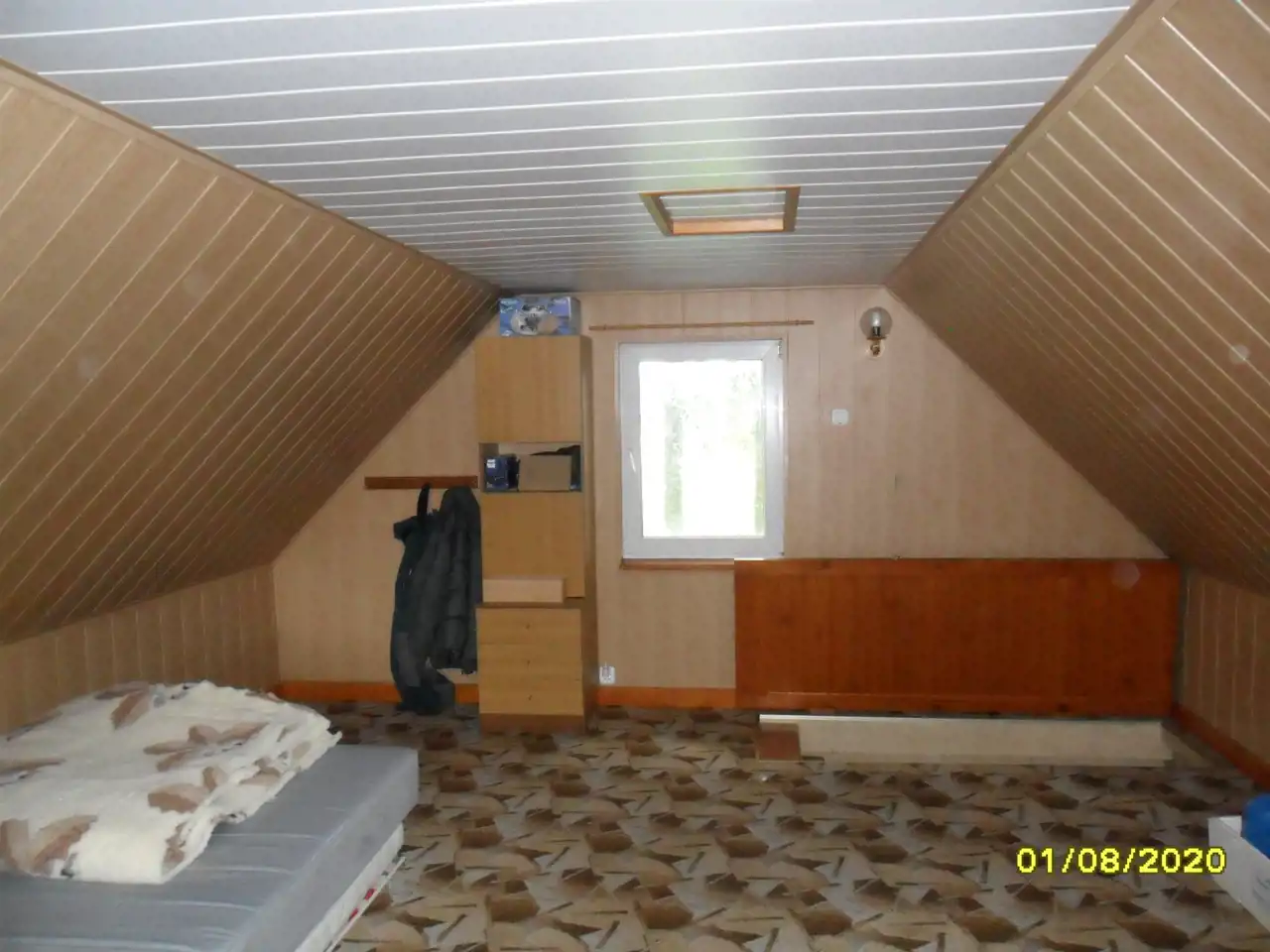 Na działce murowany domek letniskowy zbudowany na planie prostokąta o wymiarach 5 x 7m z poddaszem.