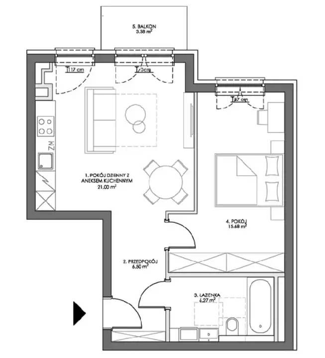 - Charakterystyka mieszkania 49.28 m2, 2 pokoje