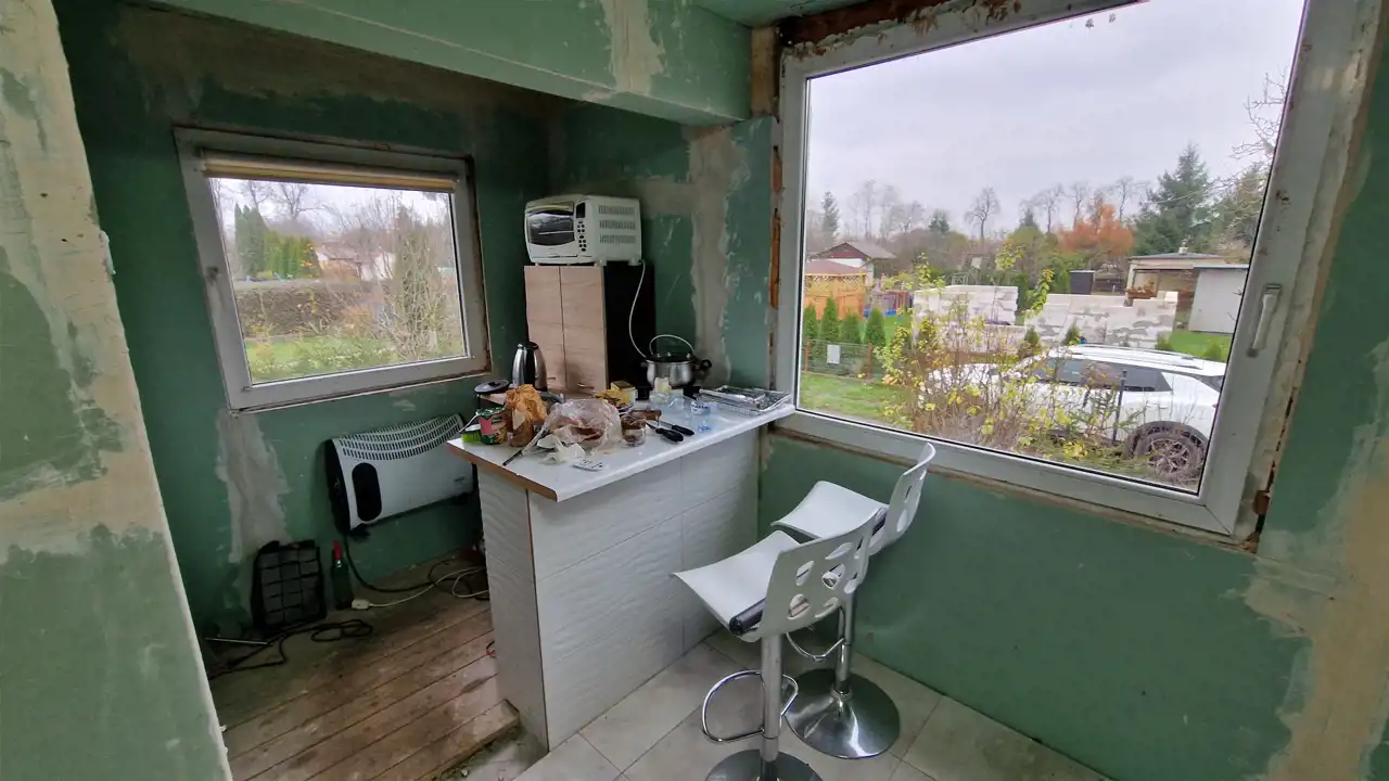 Domek posiada nowy dach- pokrycie blachodachówka, nowe okna i drzwi wejściowe, na podłogach płytki, ściany do zrobienia, ocieplenie do zrobienia.