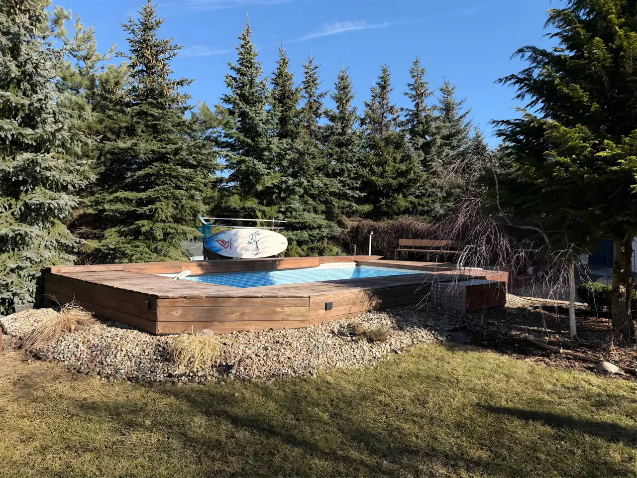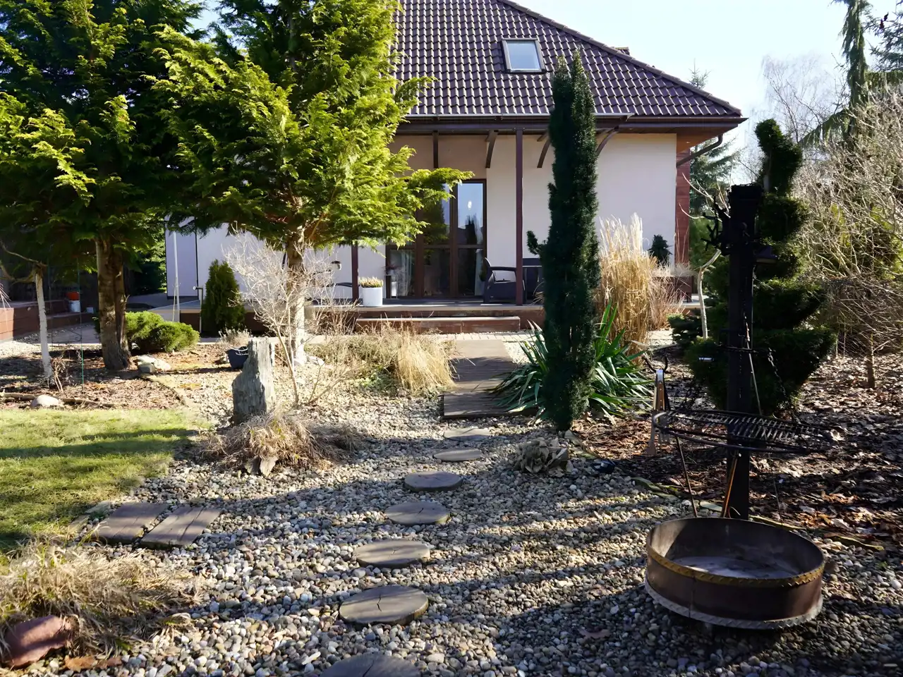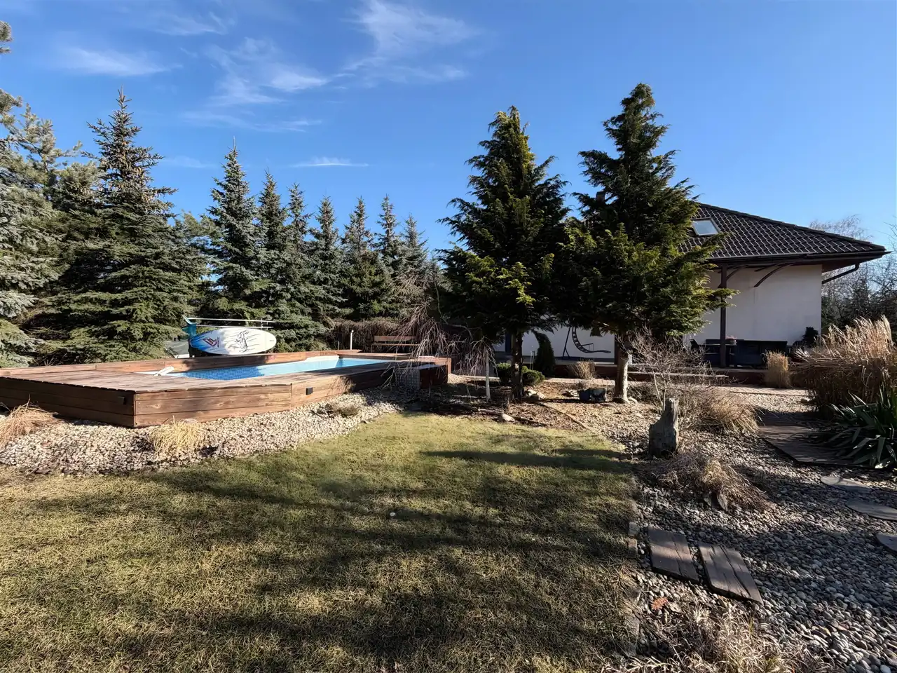 Ogród jest w całości zagospodarowany. Oprócz roślinności która nadaje piękna przestrzeni zewnętrznej znajdziemy altanę z grillem oraz basen :)
