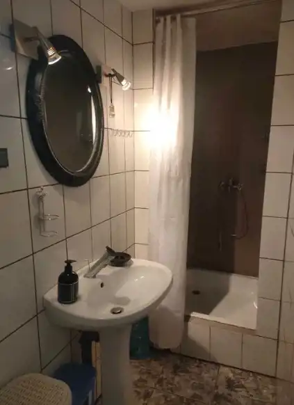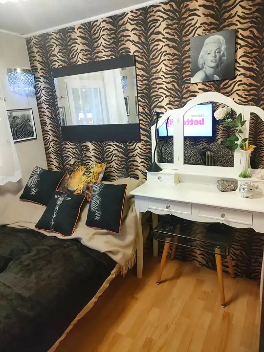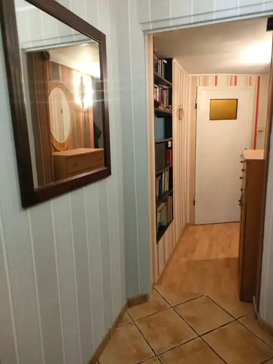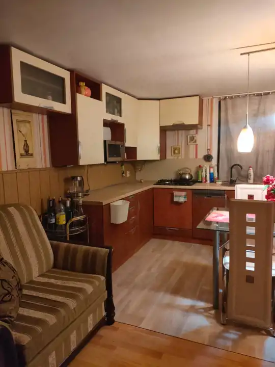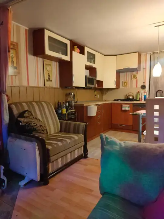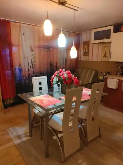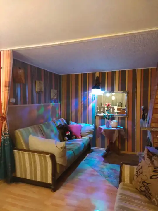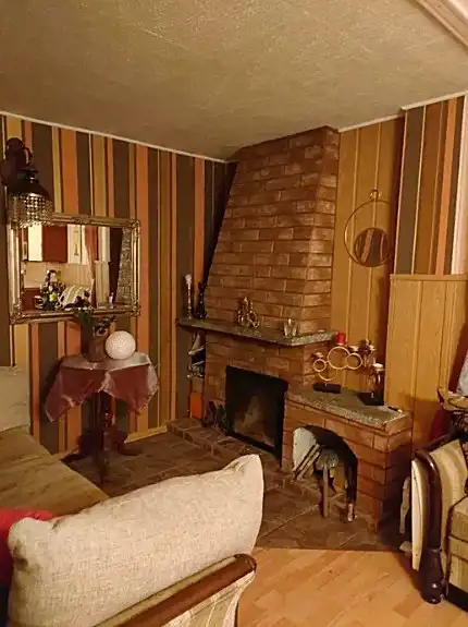 Wnętrze: przestronny salon z aneksem kuchennym oraz częścią kominkową z możliwością noclegu (3 osoby), oddzielna sypialnia z miejscem do spania dla 2 osób, pojemna szafa z drzwiami przesuwnymi. Korytarz prowadzi do łazienki oraz osobnej toalety. Wysoki standard wykończenia - ściany i podłogi w jasnych kaflach, schludne umeblowanie.