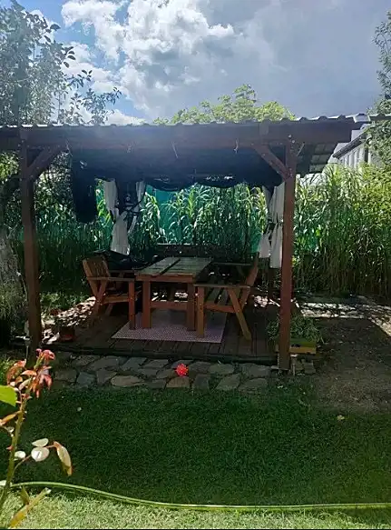 Dodatkowo: zadaszony taras 15 m² (poliwęglan) i drugi taras (12 m²) z moskitierą - cienisty kącik na posiłki i wypoczynek.
