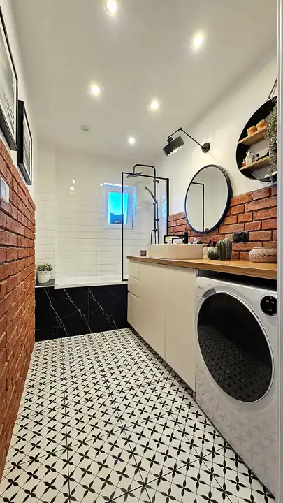- Strefa dzienna: włoski gres Marazzi Treverkfusion Neutral ułożony w jodełkę