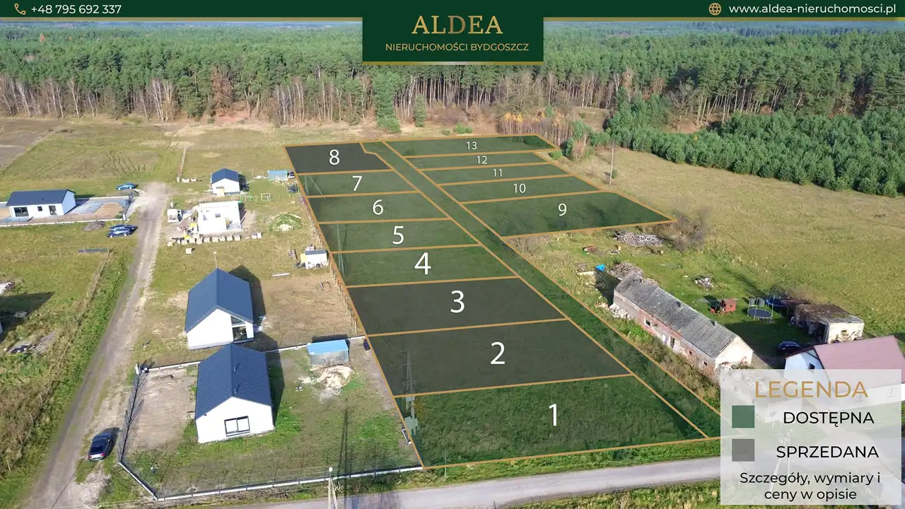 Poniżej przedstawiamy zestawienie aktualnie dostępnych parceli. Numery odpowiadają oznaczeniom na załączonej mapie: