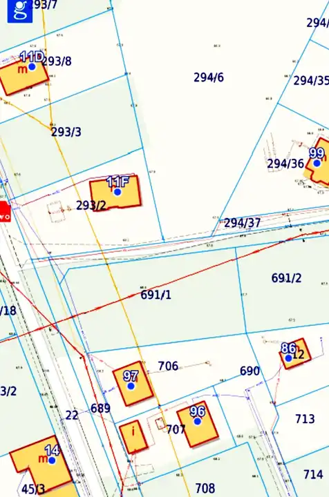 - Media Woda: w ulicy; Kanalizacja: brak; Prąd: w ulicy