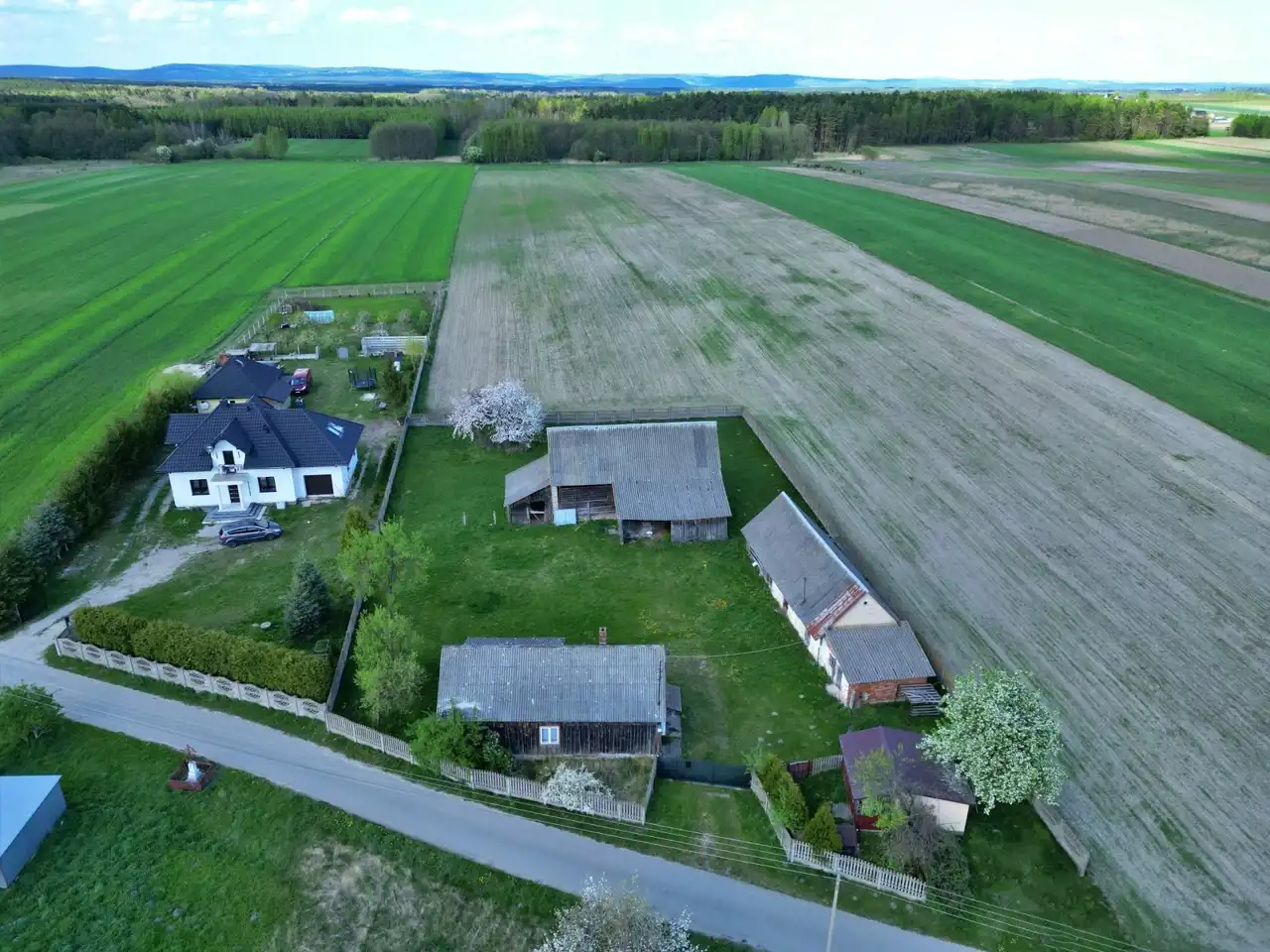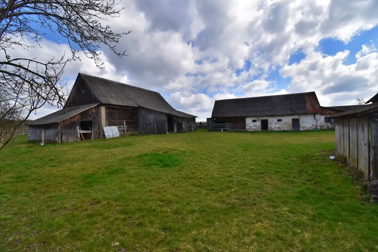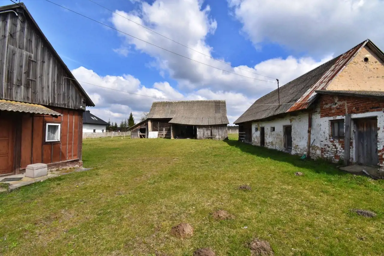 Na działce znajdują się budynki w stanie do wyburzenia / generalnego remontu: dom jednorodzinny o pow. ok. 60 m2, stodoła o pow. ok. 150 m2 i pomieszczenia gospodarcze o pow. ok. 90 m2.