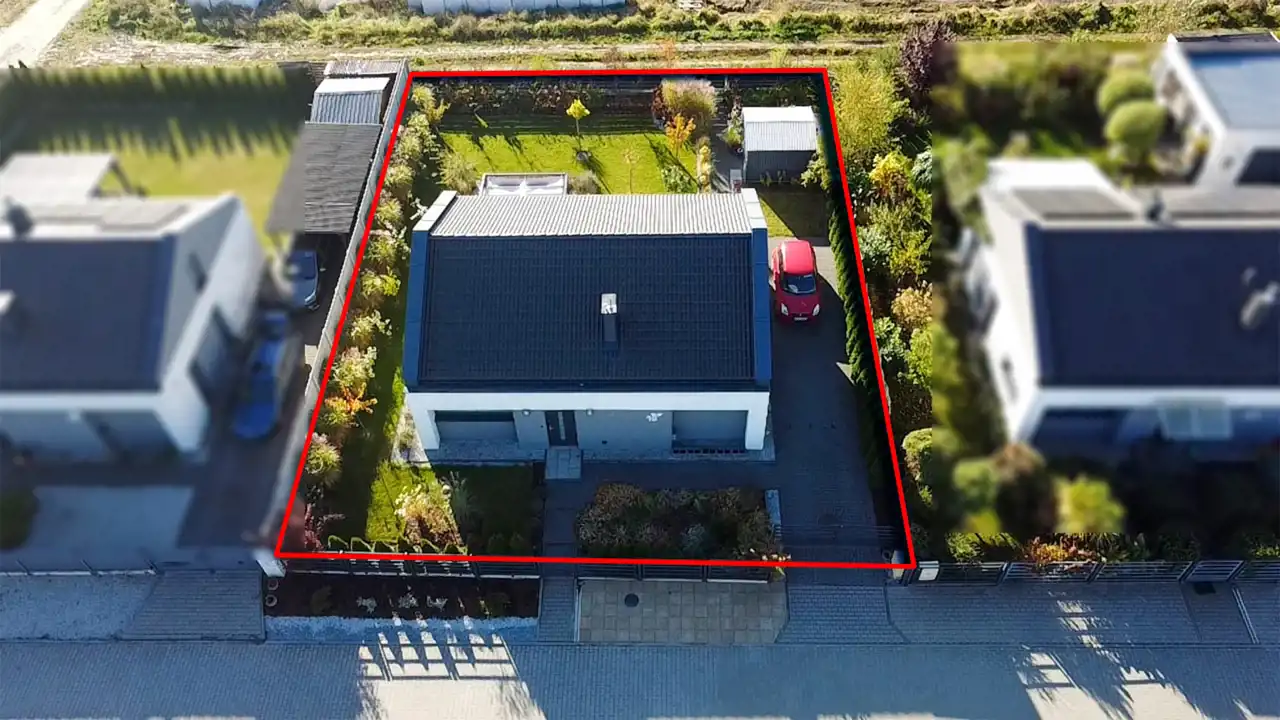 Zadbana działka o powierzchni 523 m² w pełni ogrodzona — częściowo ogrodzeniem betonowym, panelowym oraz modułowym.