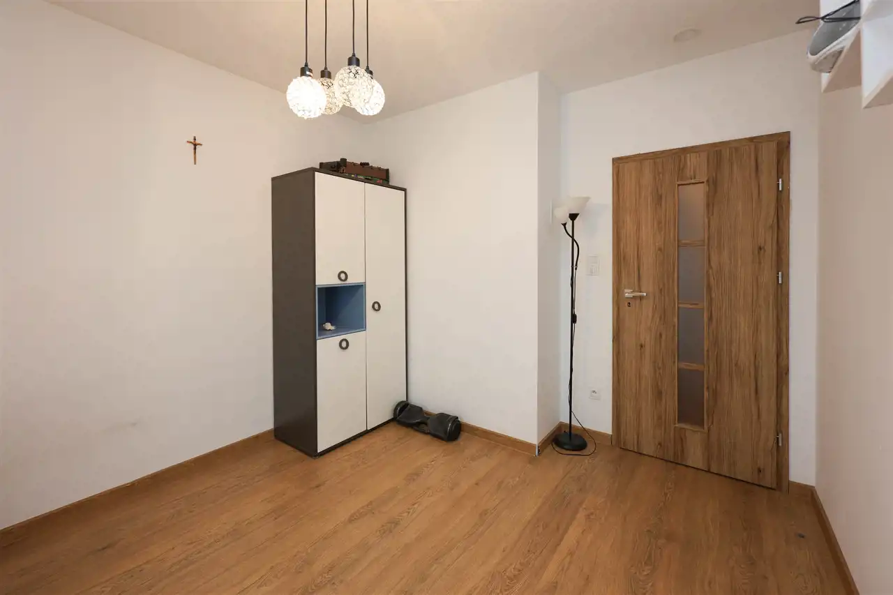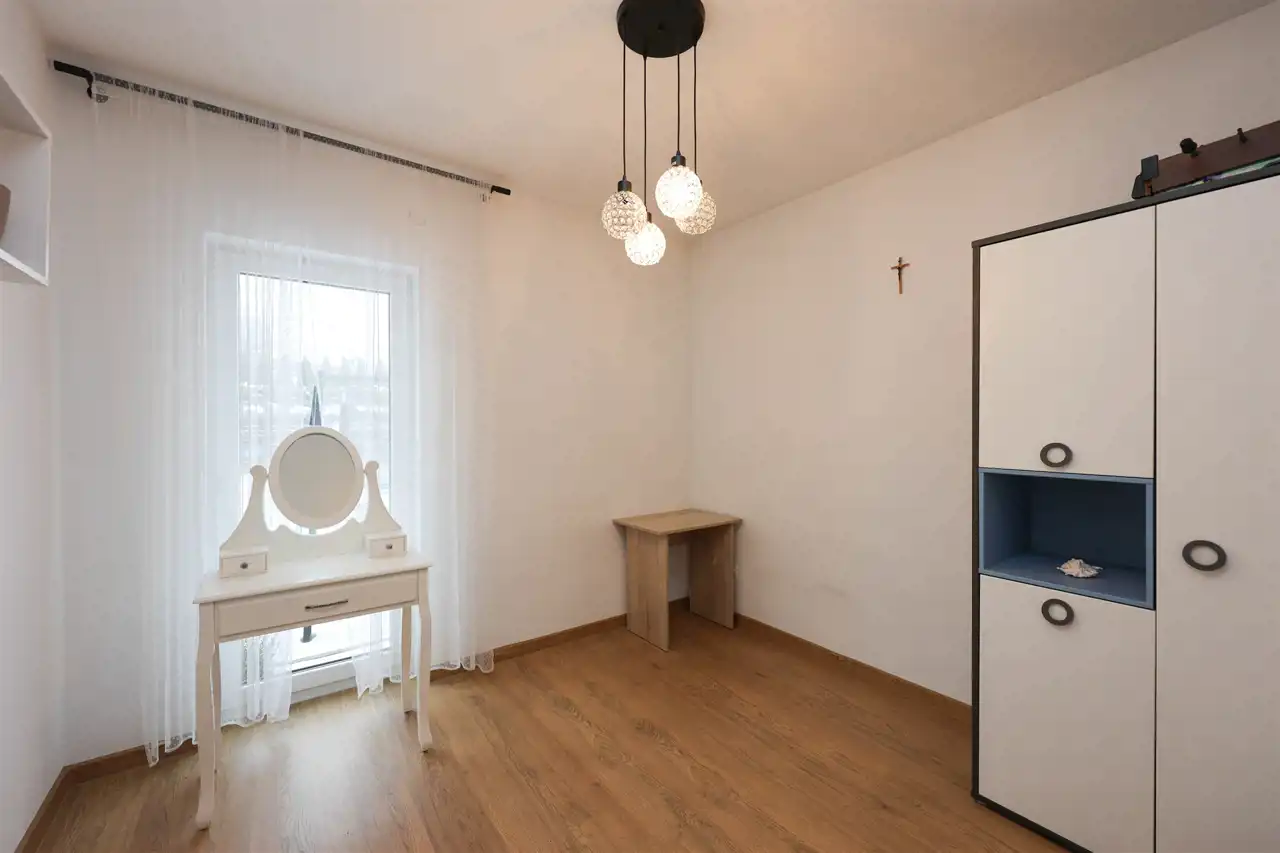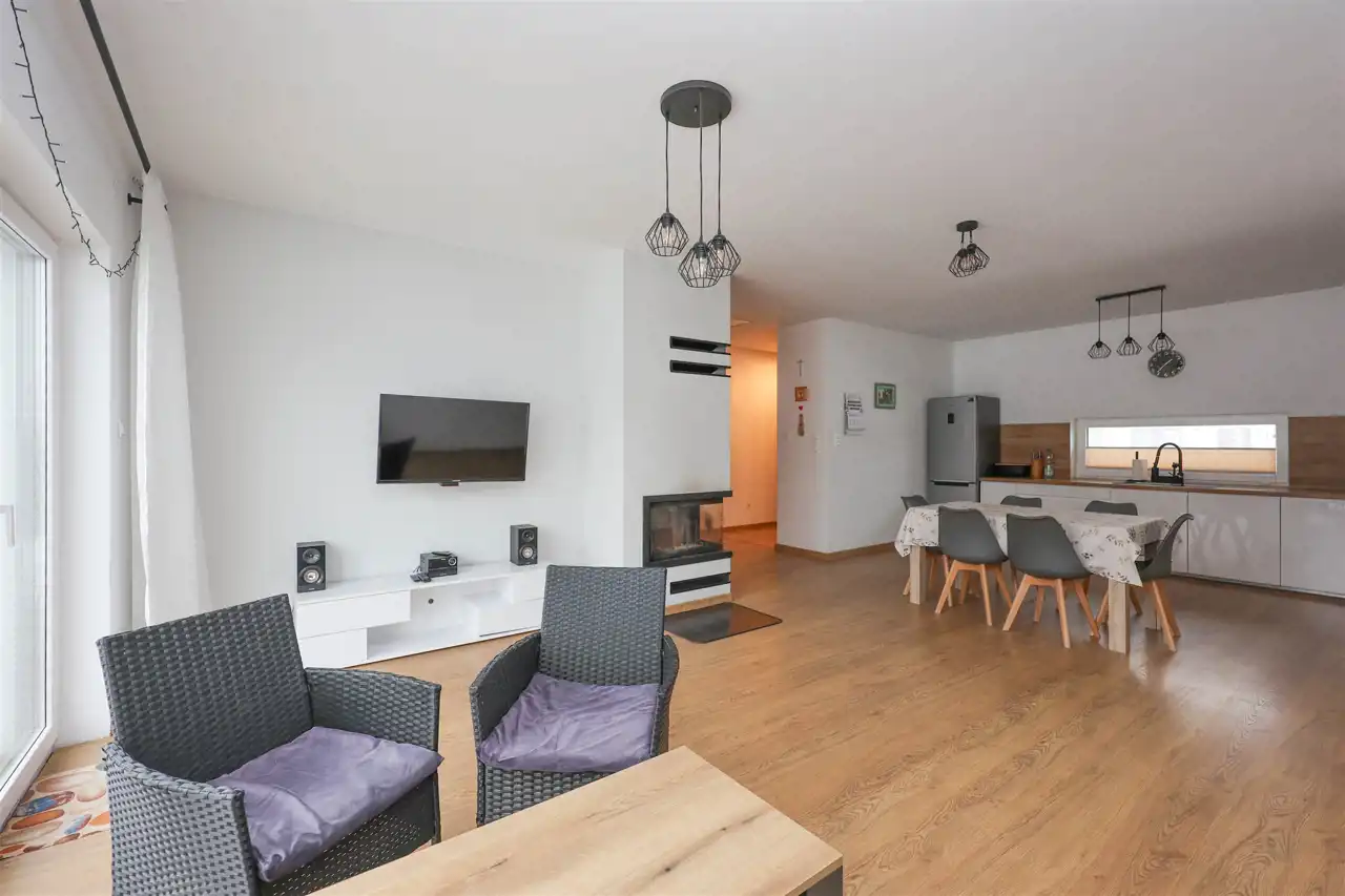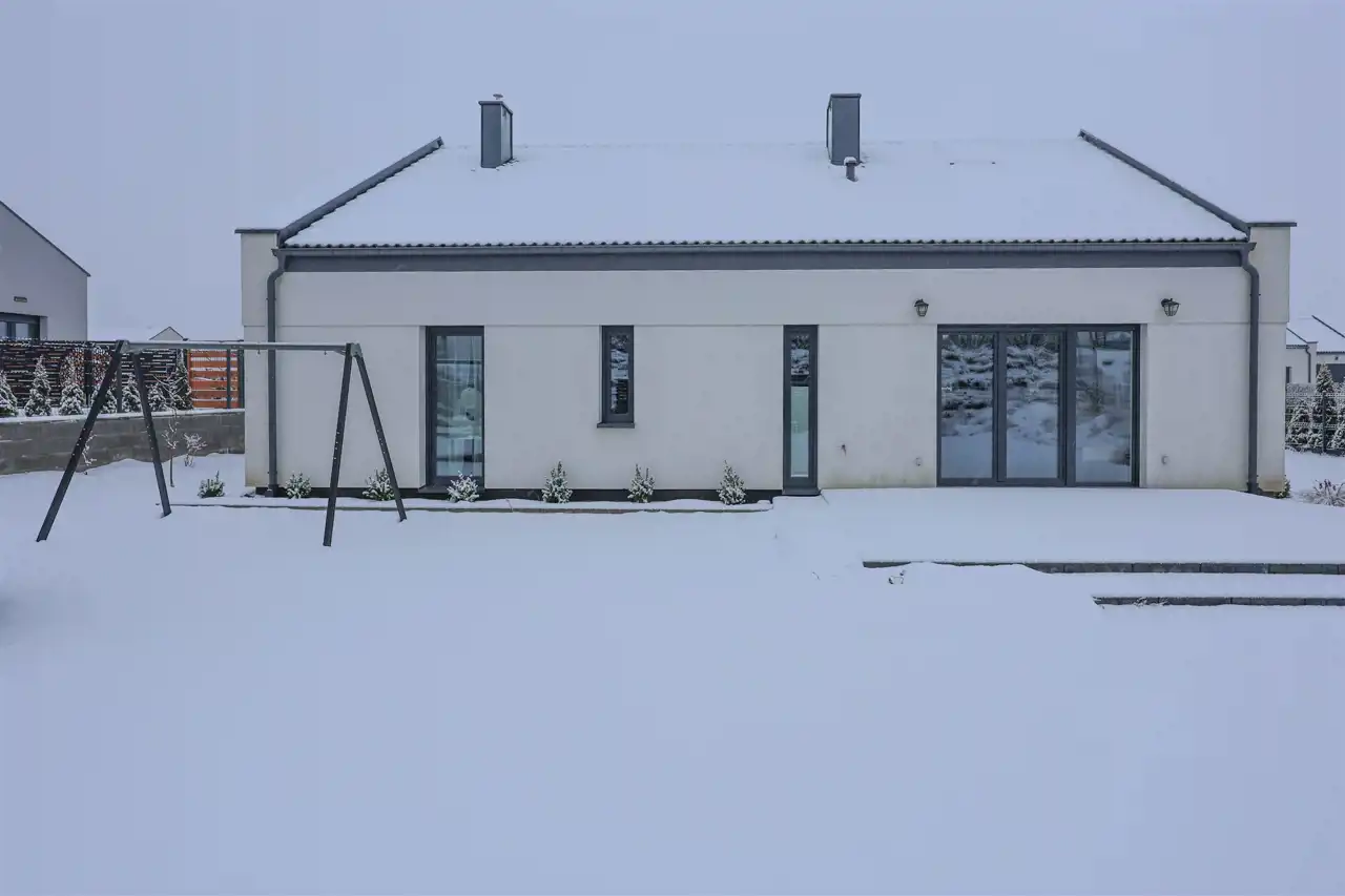 Dom składa się z czterech pokoi, w tym trzech sypialni oraz dużego, jasnego salonu połączonego z aneksem kuchennym o powierzchni 36,88m2.