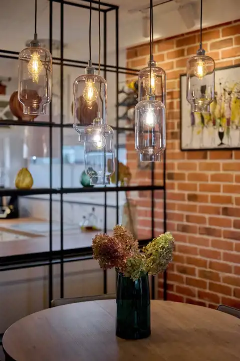 Całość utrzymana jest w spójnym, eleganckim stylu. Wnętrze zdobią ozdobne lamele, cegła oraz starannie dobrane oświetlenie.