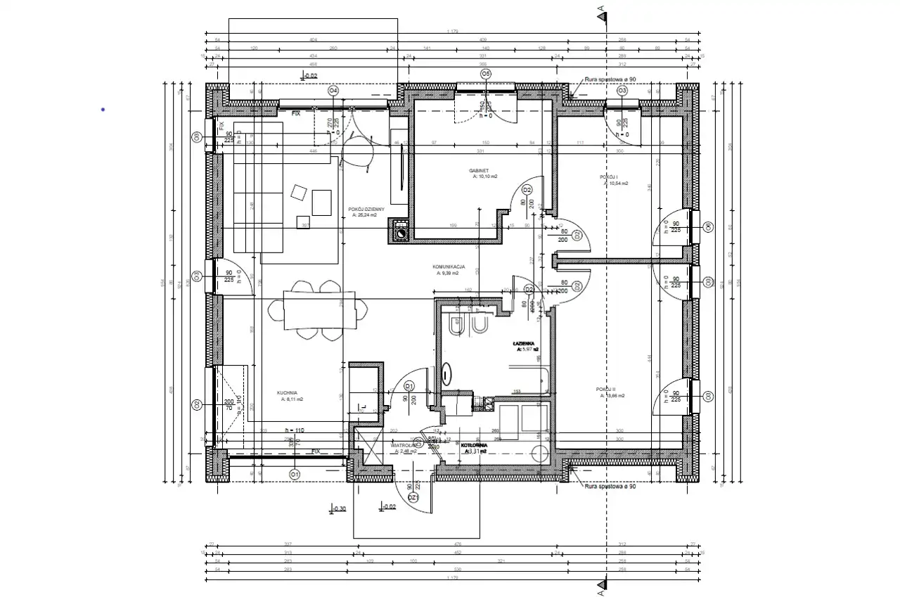 - Pokrycie dachowe: dachówka cementowa