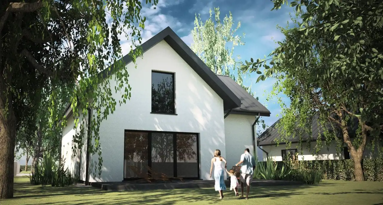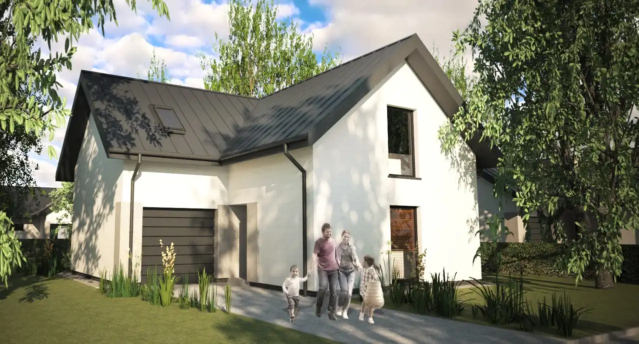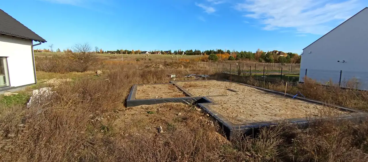 Według projektu na działce rozpoczęto budowę wolnostojącego DOMU mieszkalnego jednorodzinnego, parterowego z poddaszem użytkowym i z garażem w jednej bryle, o powierzchni użytkowej 149,30 mkw a powierzchni całkowitej 168 mkw.