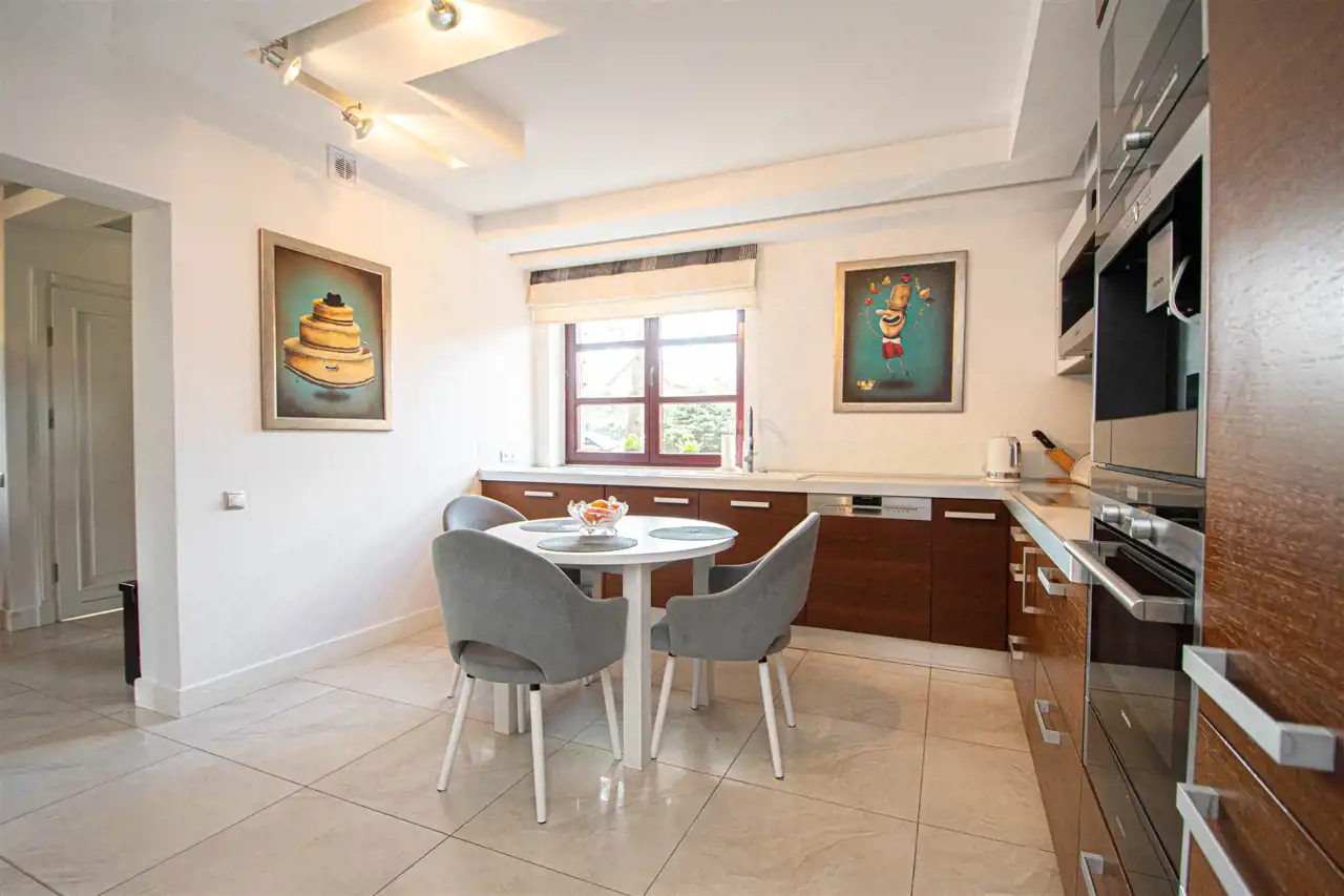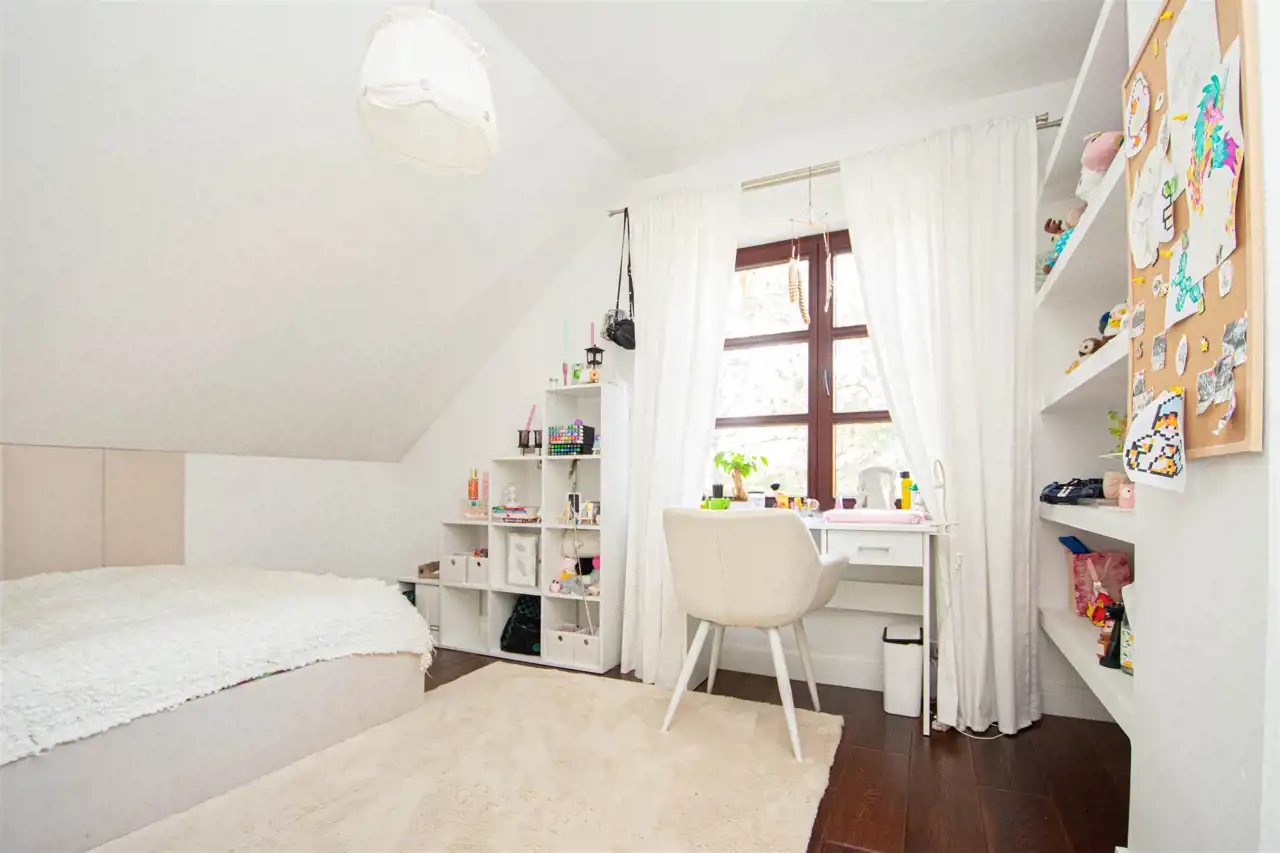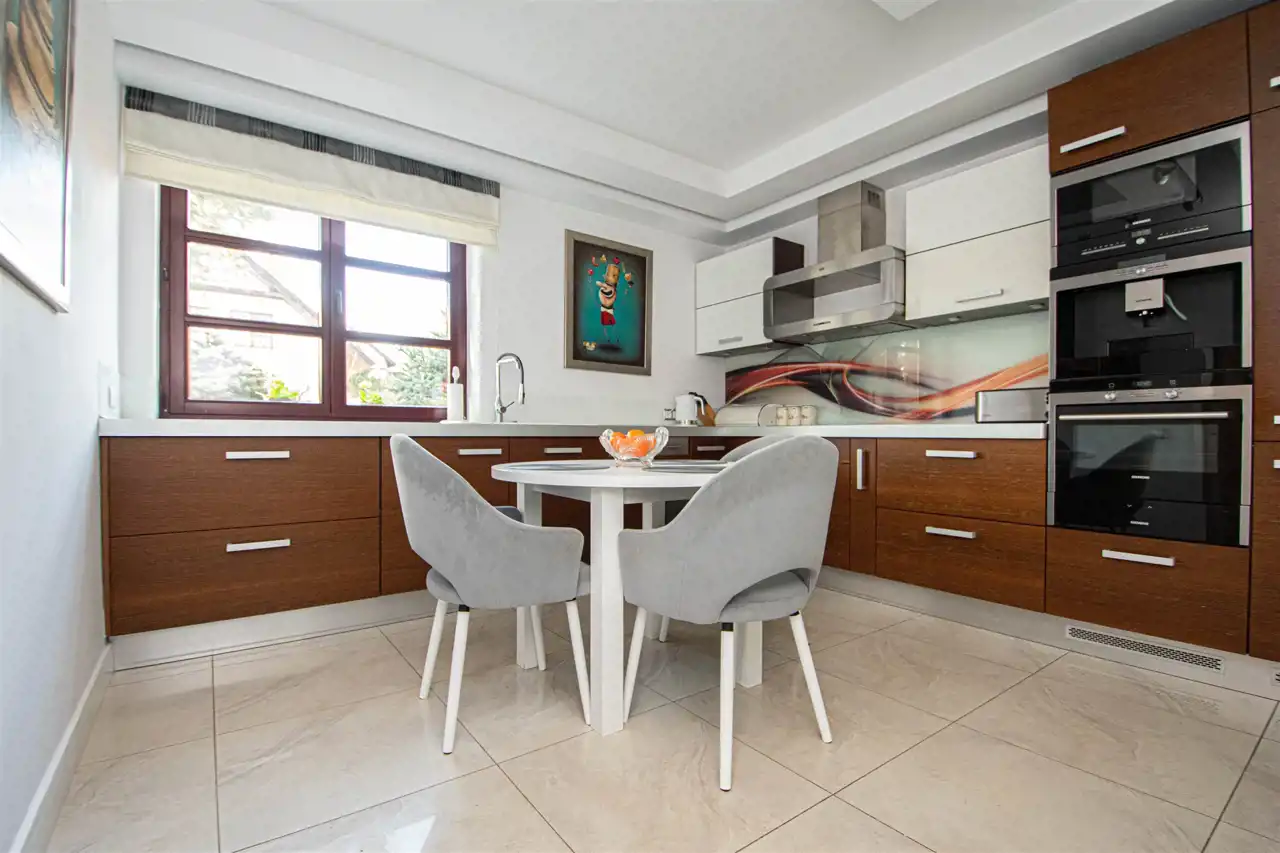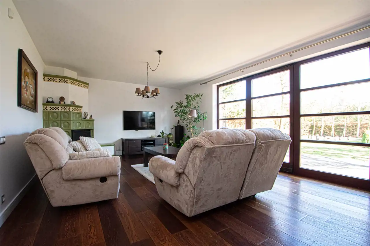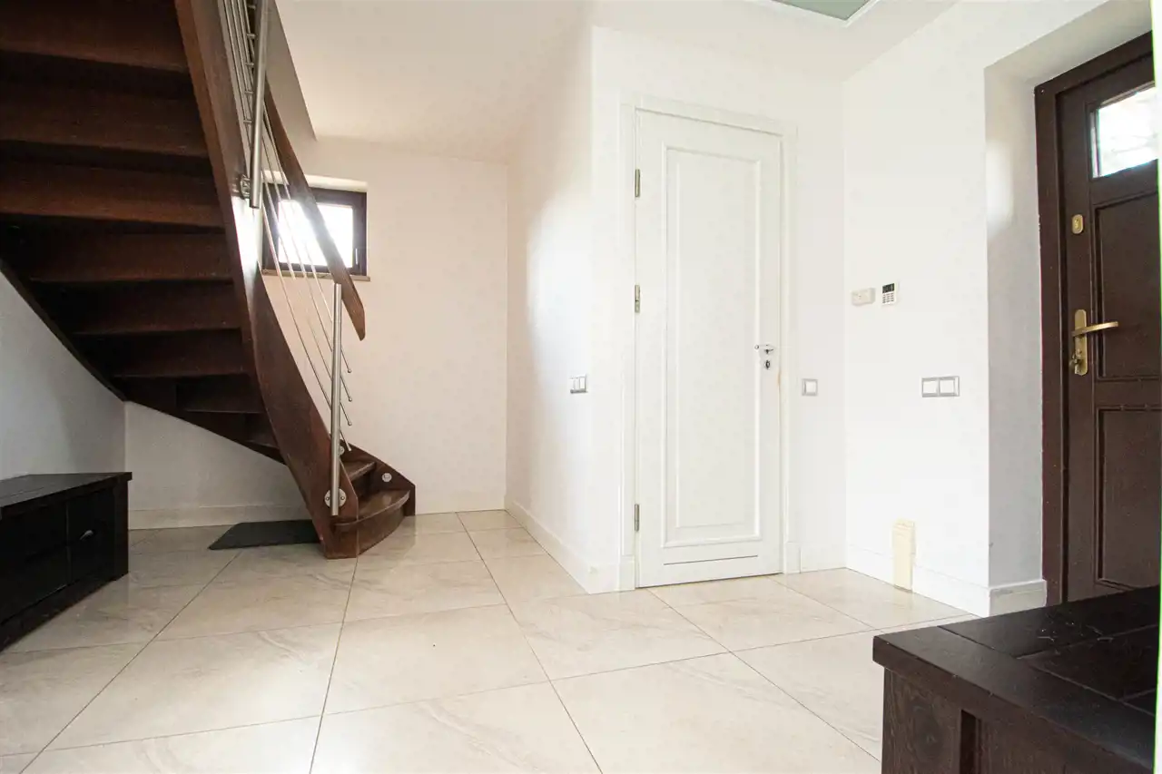 Powierzchnia użytkowa domu to 158,35 m2, z garażem w bryle budynku oraz z wejściem bezpośrednim z garażu do domu. Dom wykończony wysokiej jakości materiałami, słoneczny, otoczony zielenią, z pełną infrastrukturą techniczną. Na całej powierzchni domu ogrzewanie podłogowe, posadzki wyłożone gresem lub dębowymi deskami podłogowymi.
