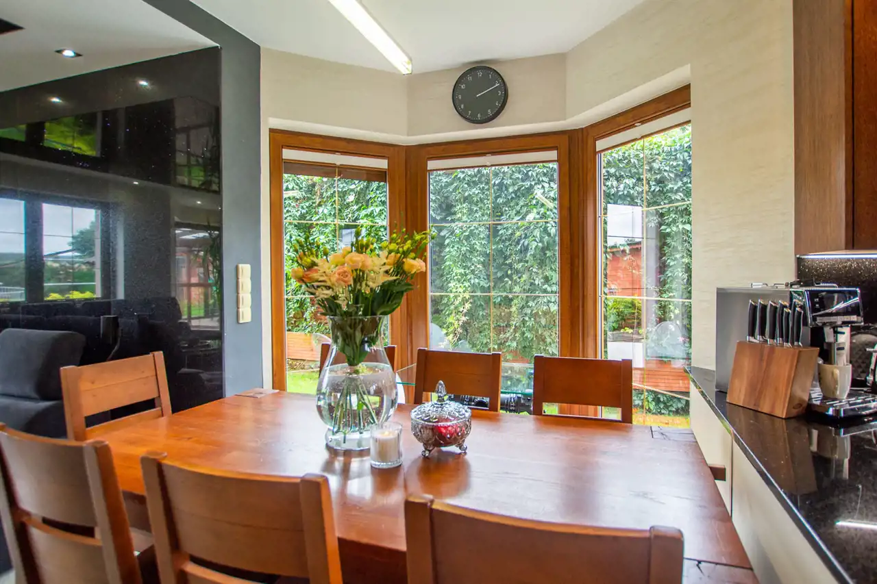 Po otwarciu łączą tą przestrzeń z ogrodem. Tuż przy nim jest zabudowany grill gazowy.