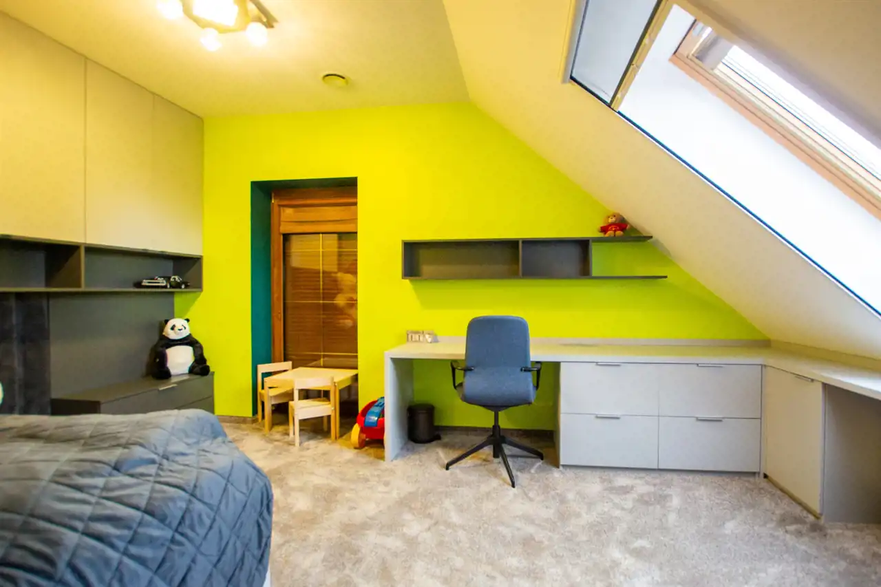 Na piętrze strefa sypialna - dwa pokoje dziecięce, sypialnia główna z garderobą oraz łazienka z wanną i prysznicem. Każdy pokój posiada balkon.