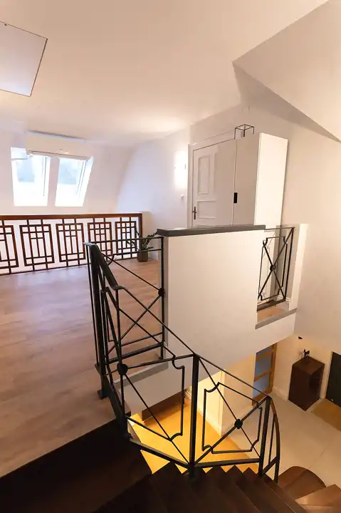 Piętro - na piętro prowadzą drewniane schody znajdujące się bezpośredni przy salonie