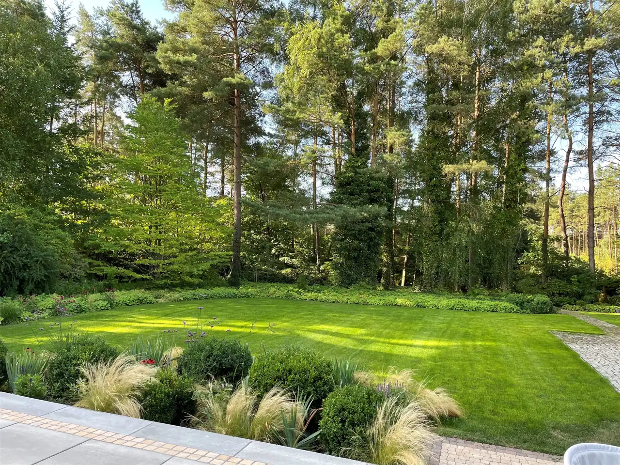 Ogród pełen wieloletnich nasadzeń zachwyca o każdej porze roku – to wymarzone miejsce na poranną kawę, letnie obiady, zabawy z dziećmi czy wieczorne spotkania przy zewnętrznym kominku.