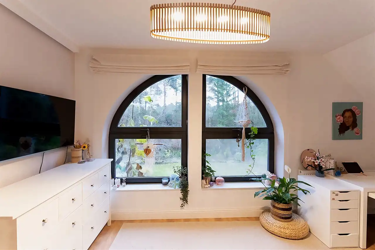 Nowoczesna stolarka okienna w całym domu, rolety sterowane elektrycznie.
