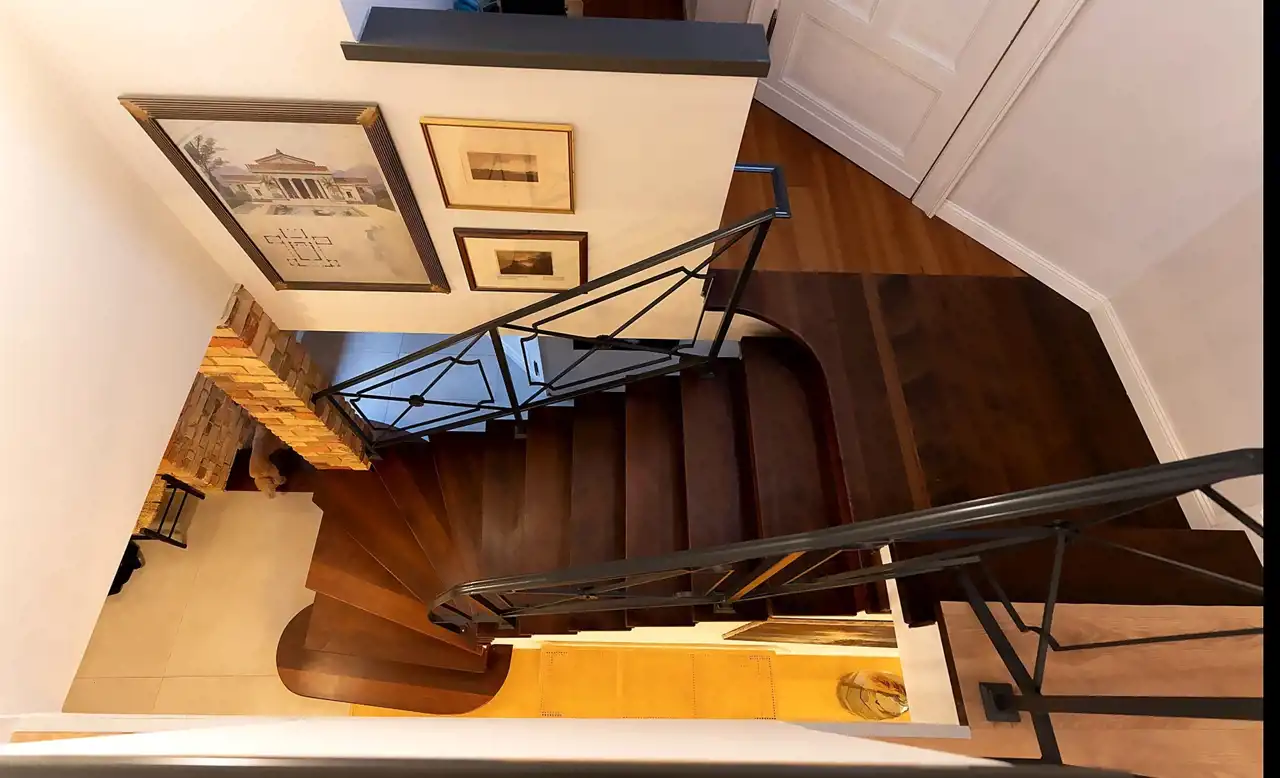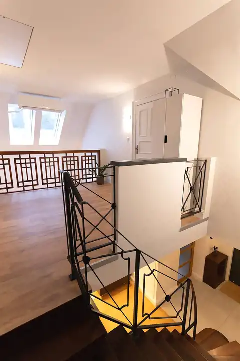 Piętro - na piętro prowadzą drewniane schody znajdujące się bezpośredni przy salonie.