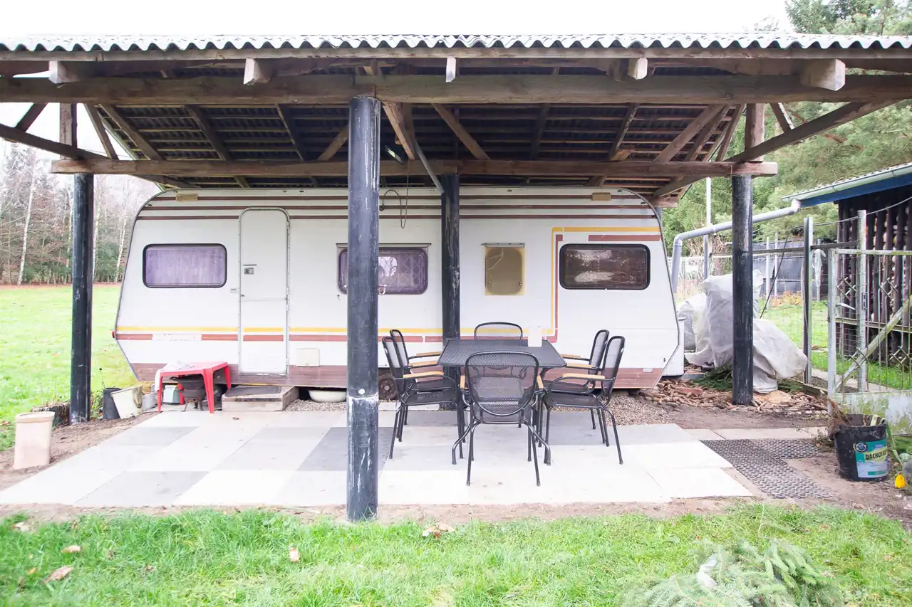 Na końcu terenu jest też stodoła, do której doprowadzono prąd.