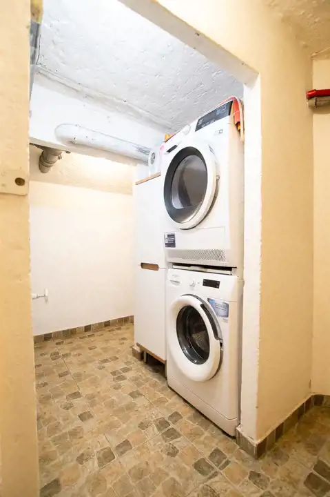 W piwnicy, która posiada również osobne wejście z zewnątrz budynku i może być niezależnym lokalem jest: