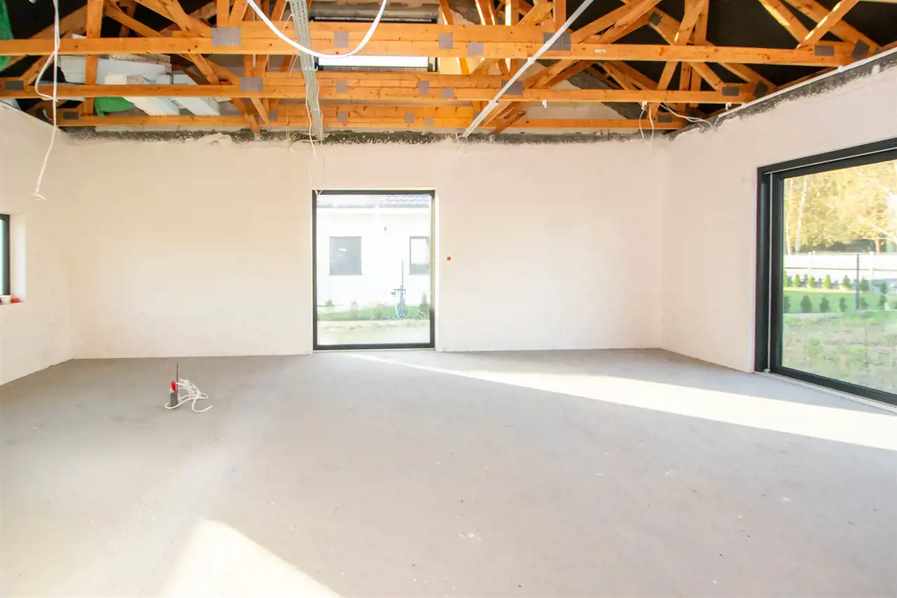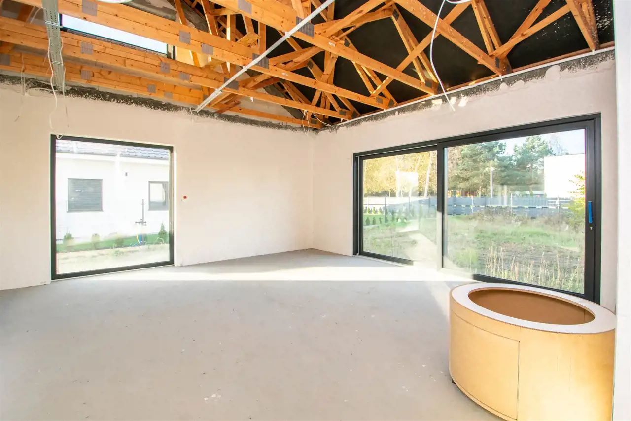 Dom zaprojektowany z myślą o komforcie i funkcjonalności. Duża ilość naturalnego światła w pomieszczeniach.