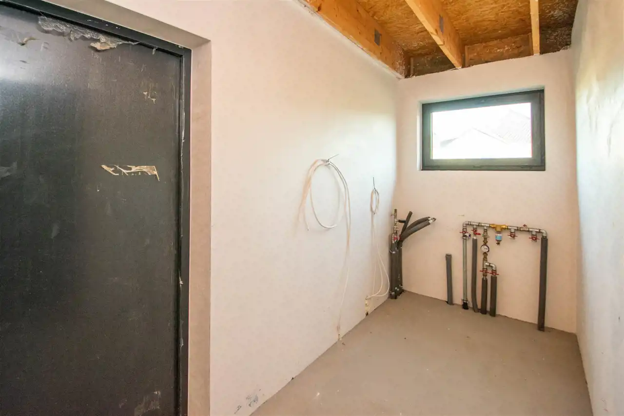 - instalacja ogrzewania centralne wodne, obieg wymuszony, lokalne źródło ciepła wewnątrz osłony termicznej budynku (pompa ciepła), instalacja z obiegiem cyrkulacyjnym. Nowa pompa ciepła zakupiona nie podłączona;