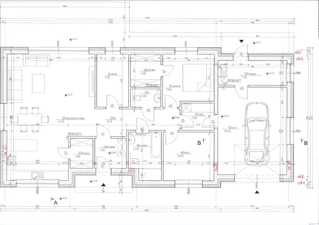 - Garaż: w bryle budynku (26,45 m²)
