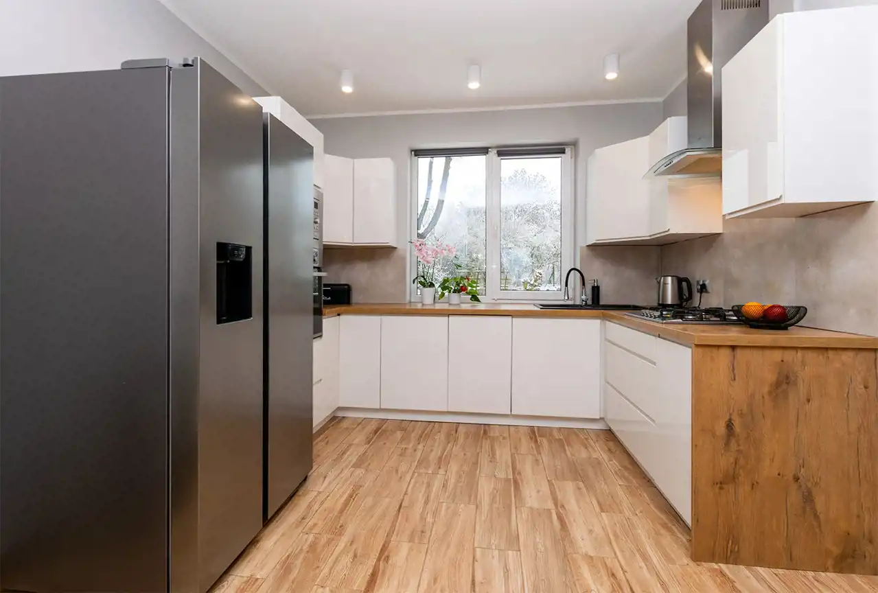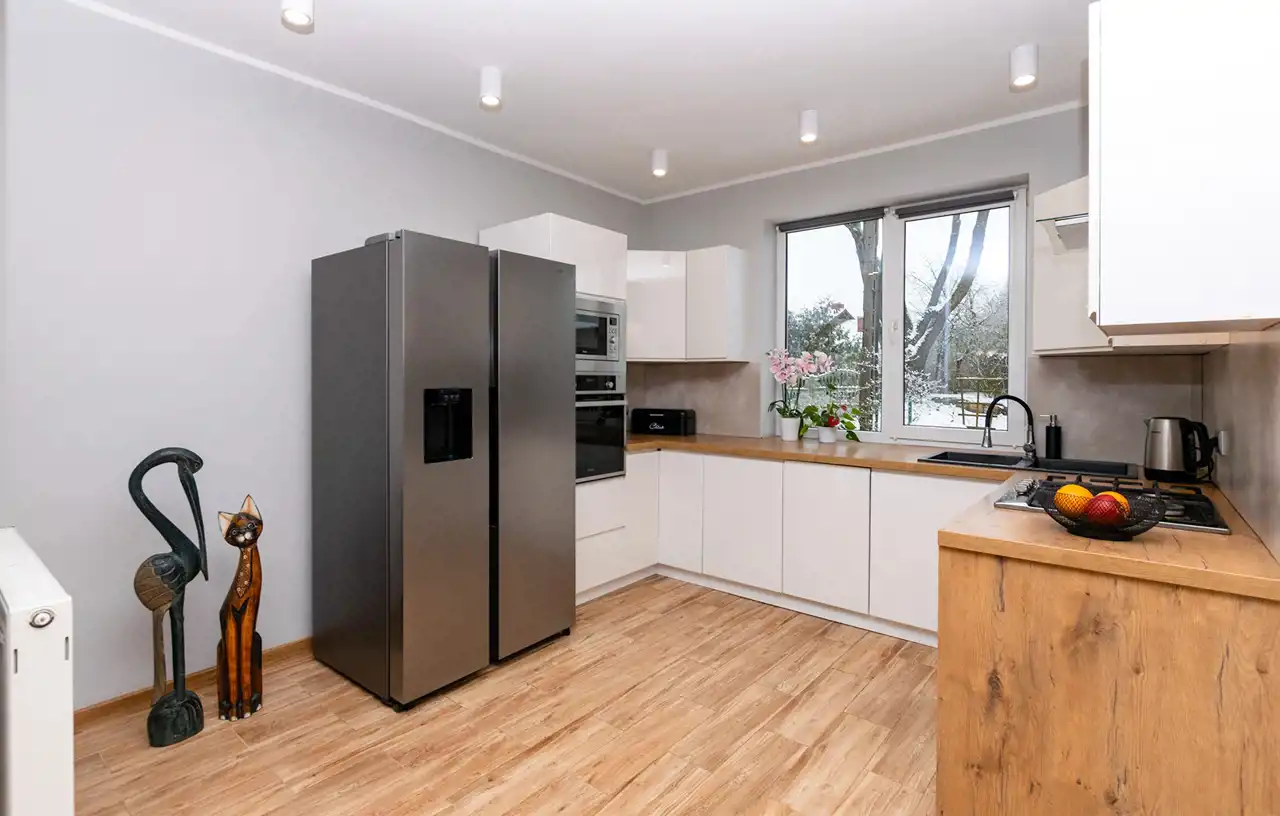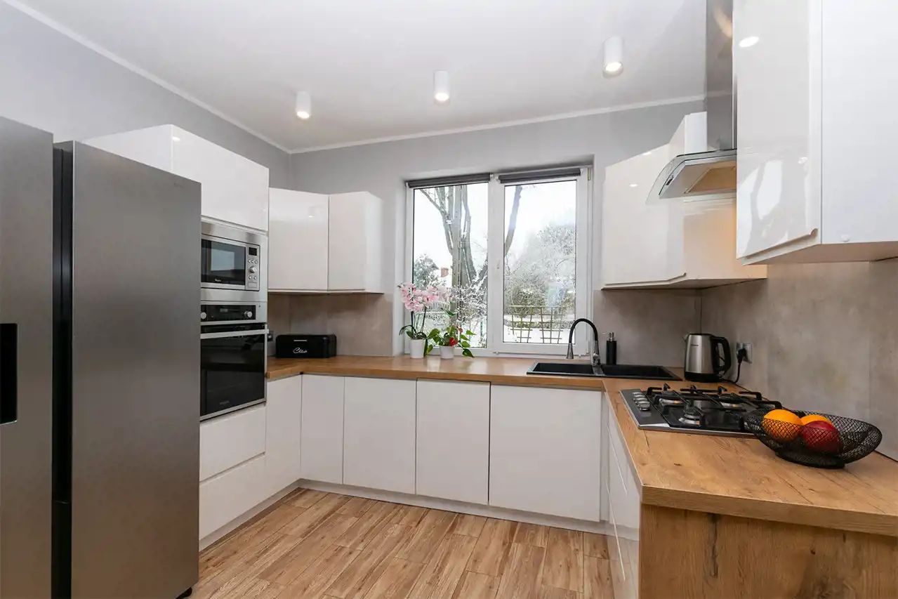 Media: prąd, woda, kanalizacja, światłowód, centralne, gaz z butki przy kuchence gazowej