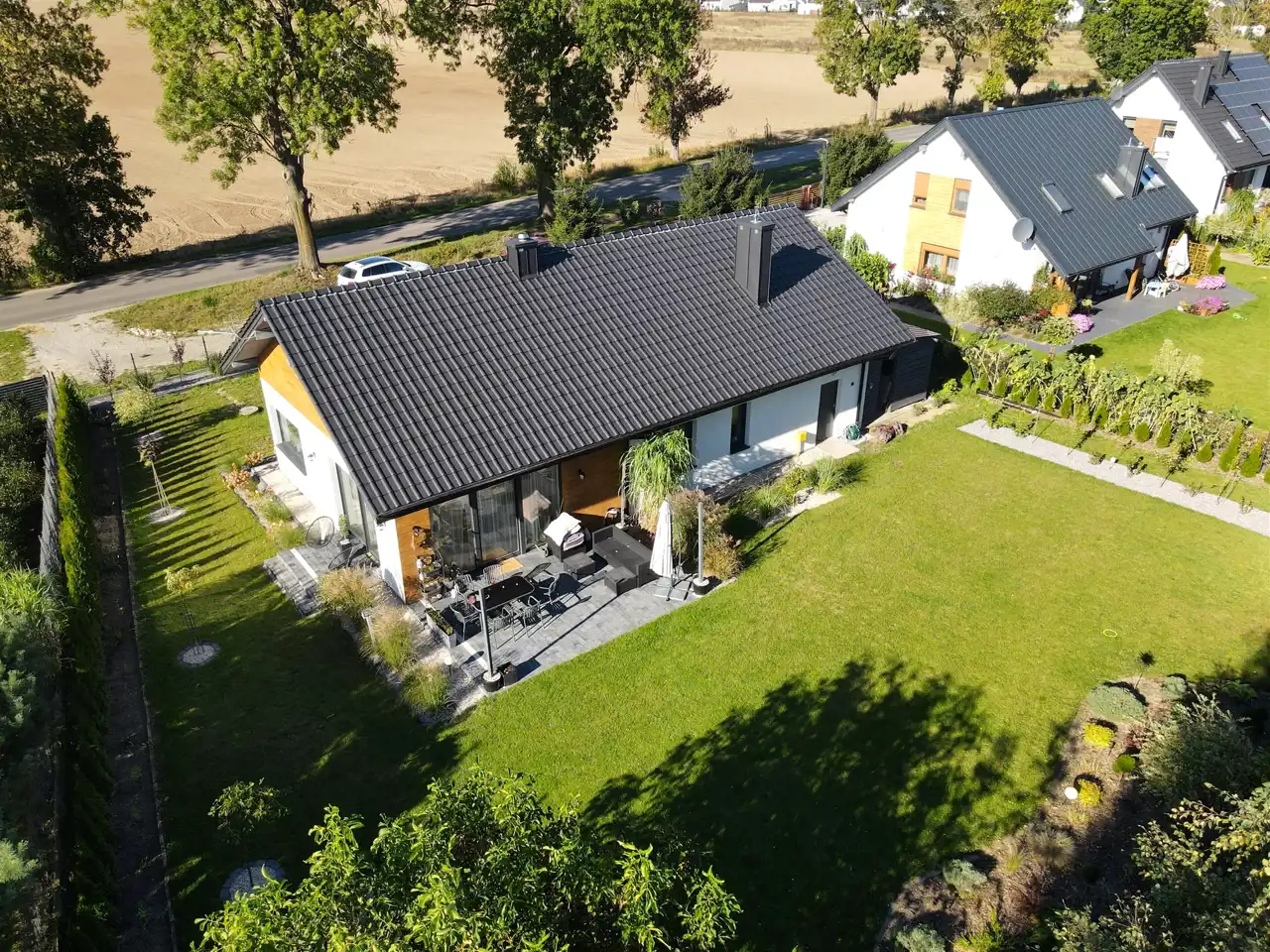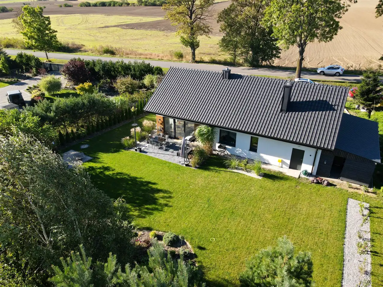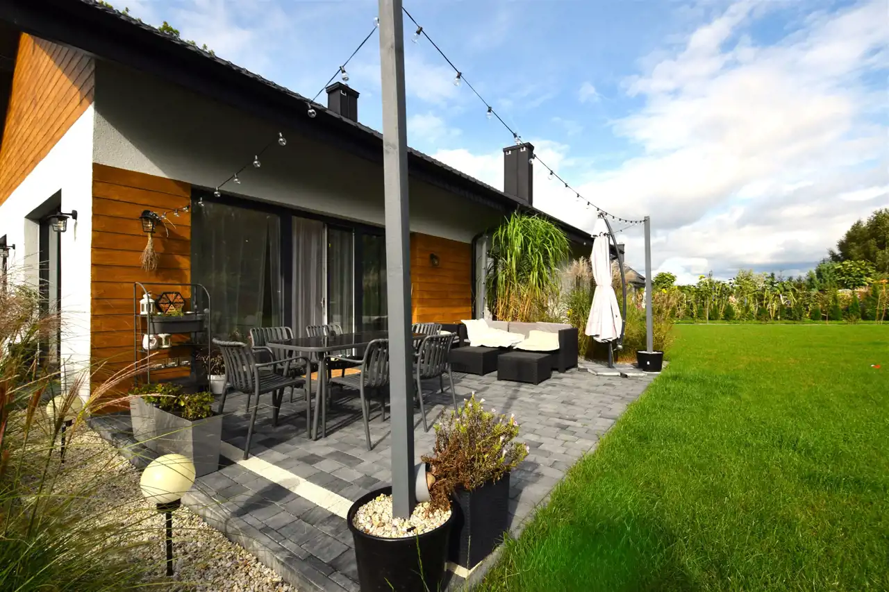 Częściowo zagospodarowana posesja zapewnia poczucie prywatności i bezpieczeństwa.