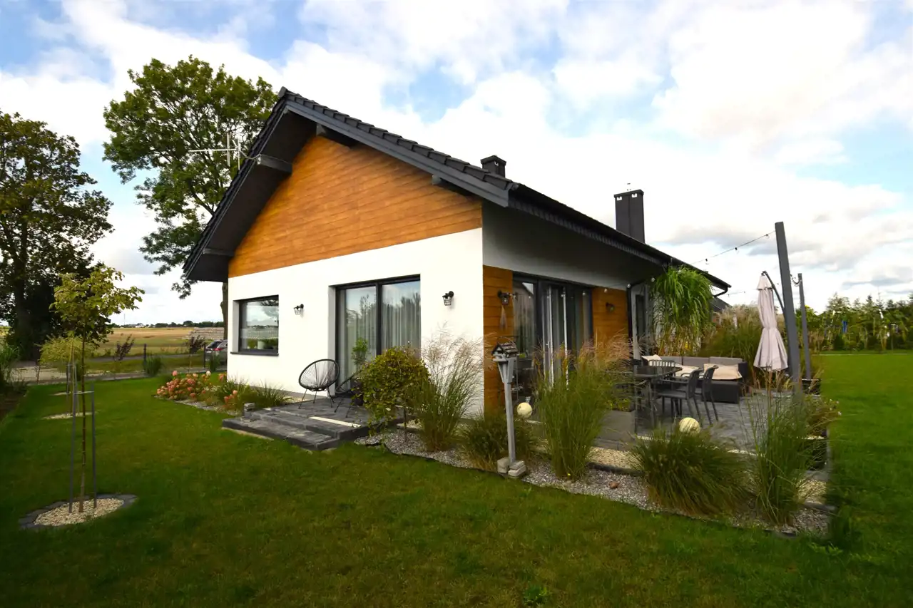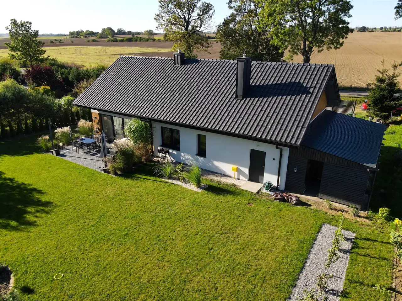 W zacisznej części miejscowości Pokrzywnica, w gminie Szydłowo, znajduje się dom, który łączy w sobie komfort współczesnego życia z kameralnością prywatnej przestrzeni.