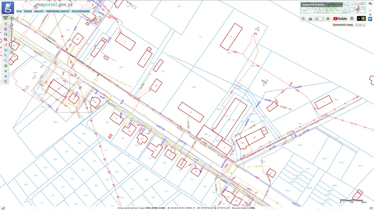 - Media: Prąd, wodociąg, kanalizacja (doprowadzone do nieruchomości). W drodze znajduje się sieć gazowa.