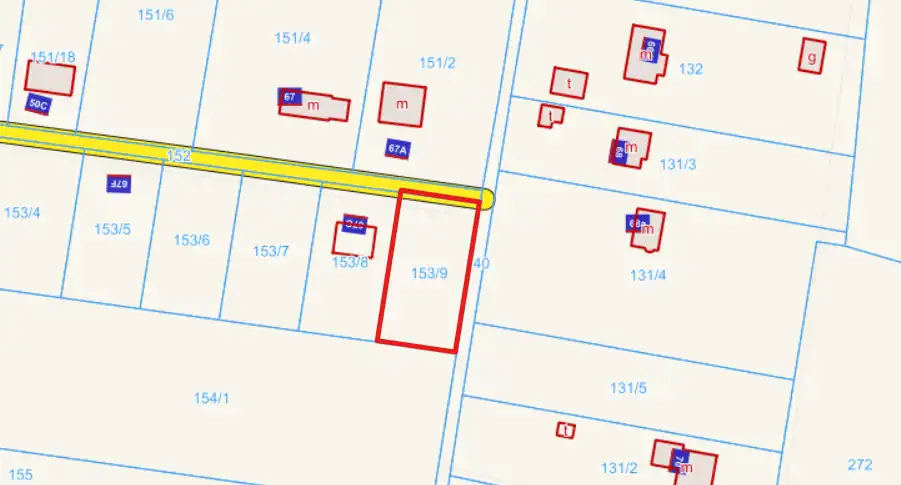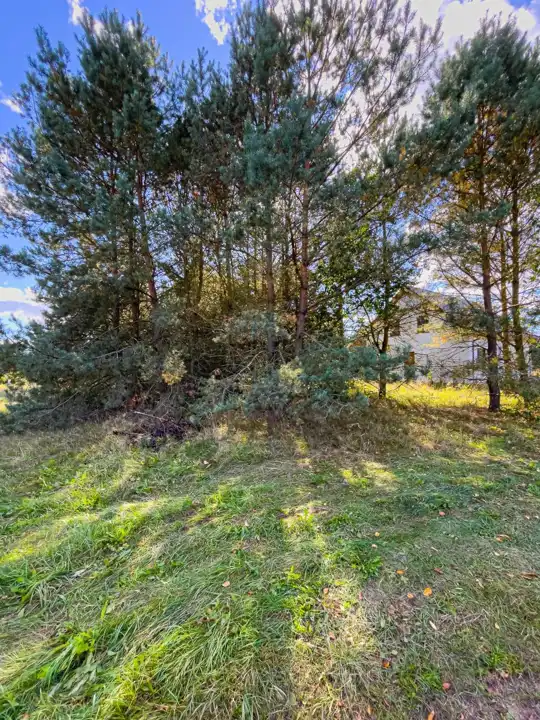 - Media Woda: w drodze; Kanalizacja: szambo; Prąd: w ulicy; Gaz: brak