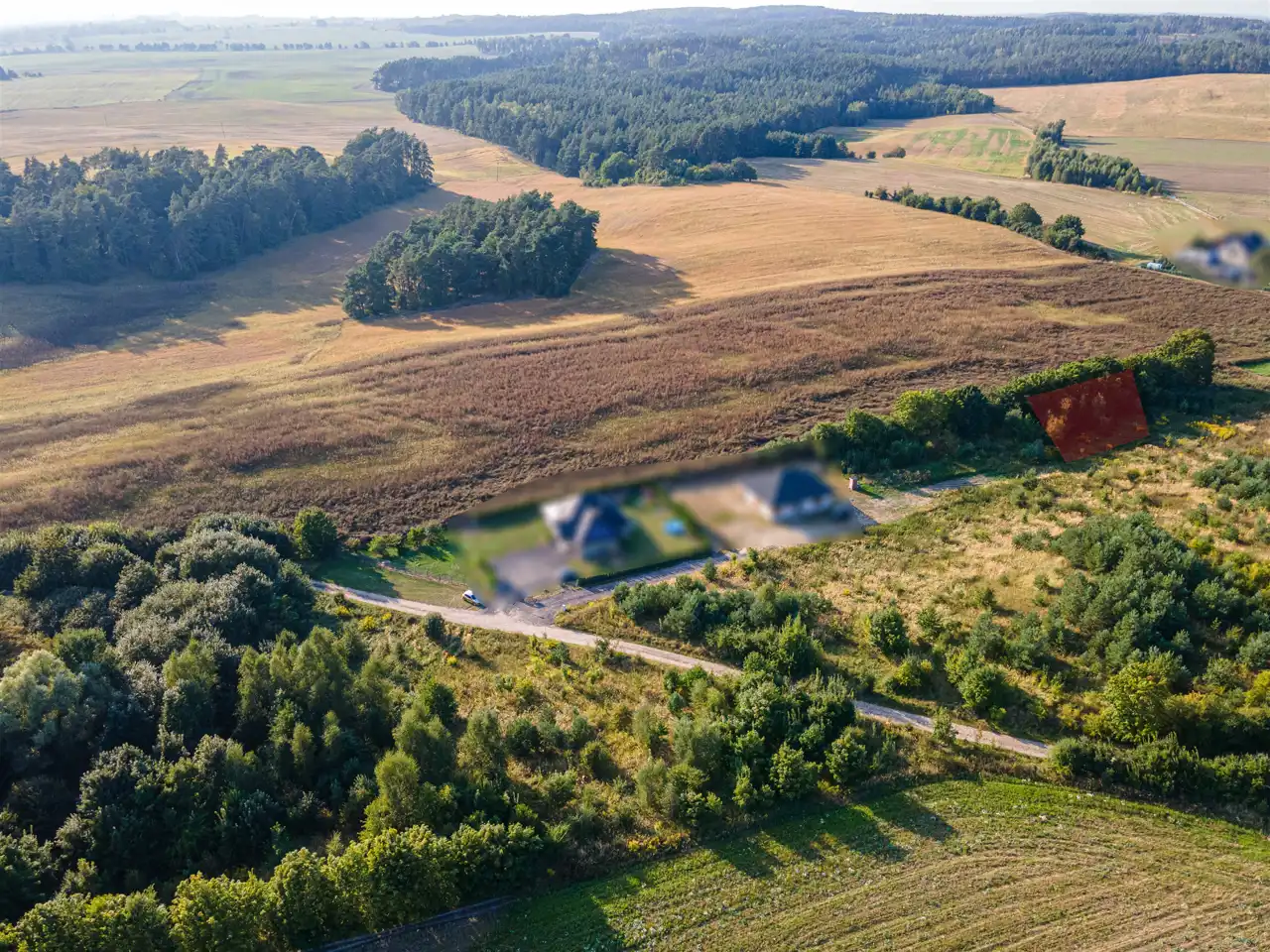 - Droga gruntowa utwardzona – wygodny dojazd przez cały rok