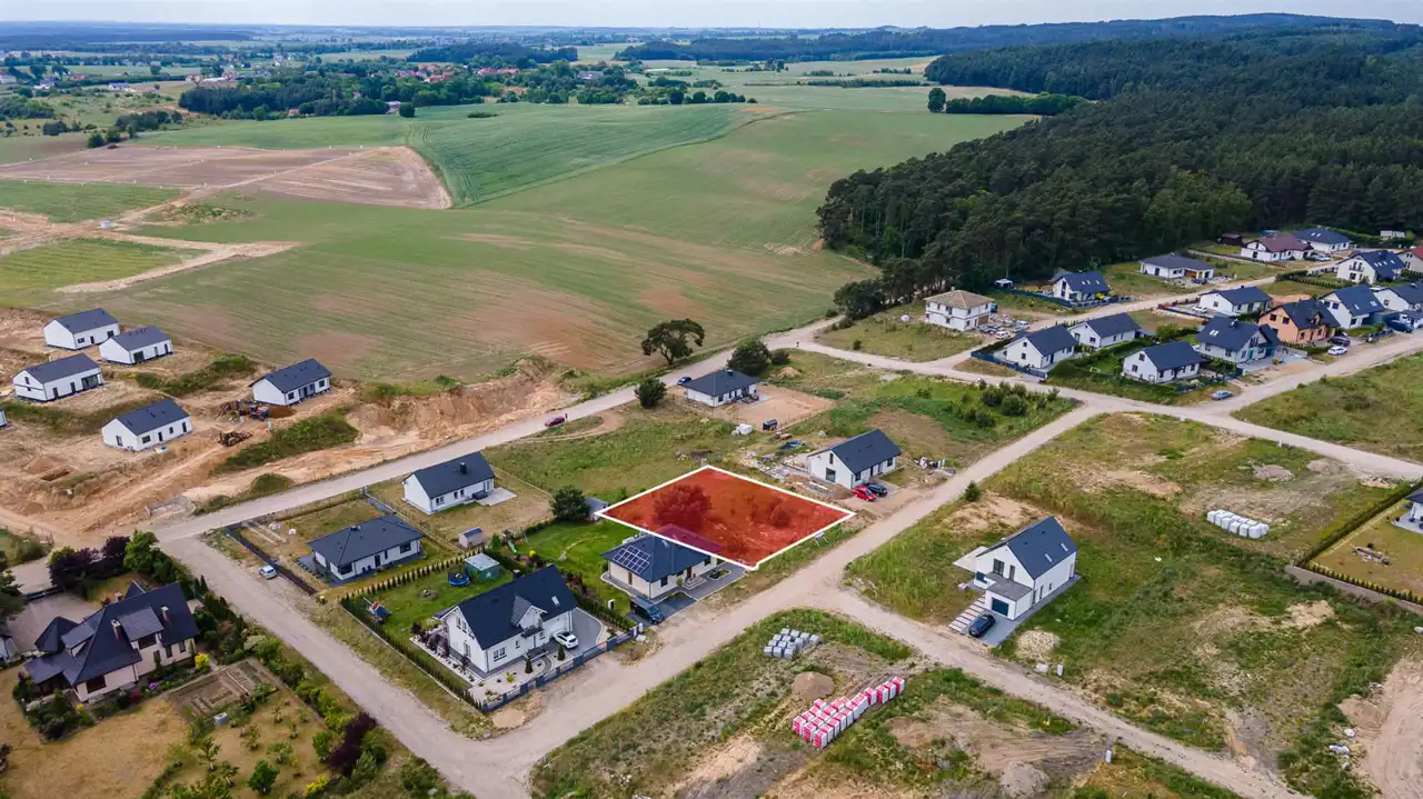 Działka jest na lekkim wniesieniu oferując niepowtarzalny widok na okolice.