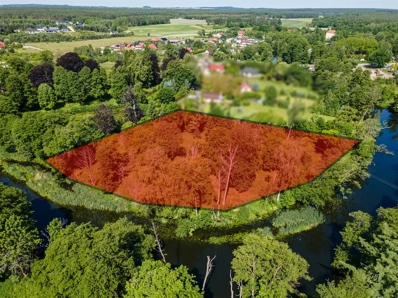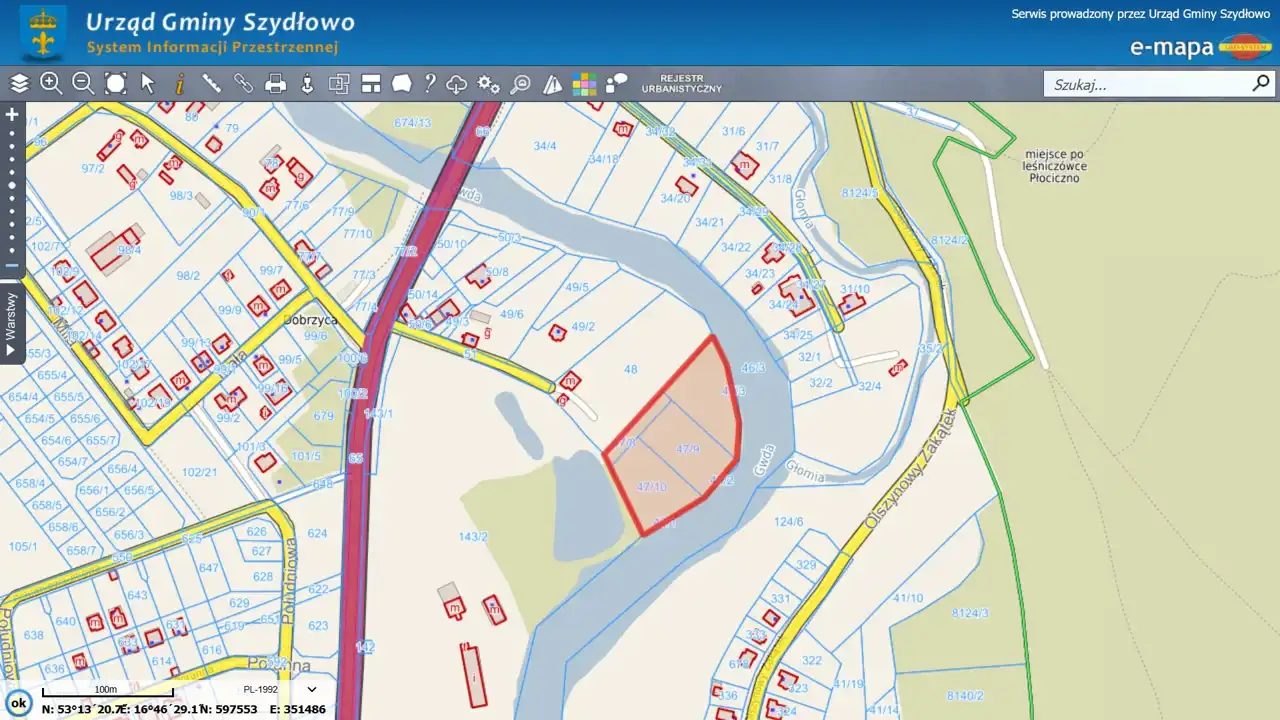 Powierzchnia: 9 045 m² – daje ogromne możliwości aranżacyjne, zarówno pod zabudowę, jak i stworzenie ogrodu marzeń czy rekreacyjnej przestrzeni nad rzeką.