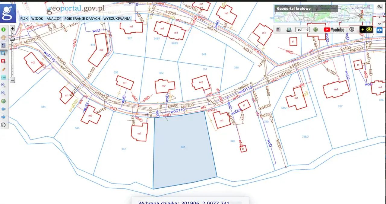 - Media Woda: w drodze; Kanalizacja: w ulicy; Prąd: na działce; Gaz: brak