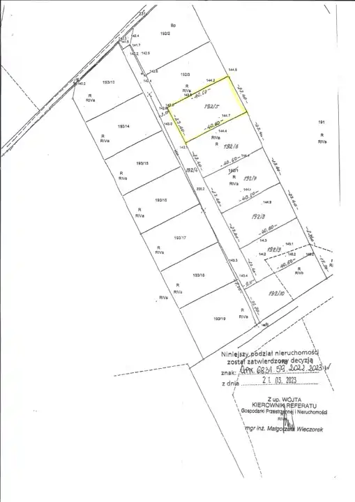 Działka o powierzchni 950m2, położona na nowo tworzonym osiedlu domków jednorodzinnych.