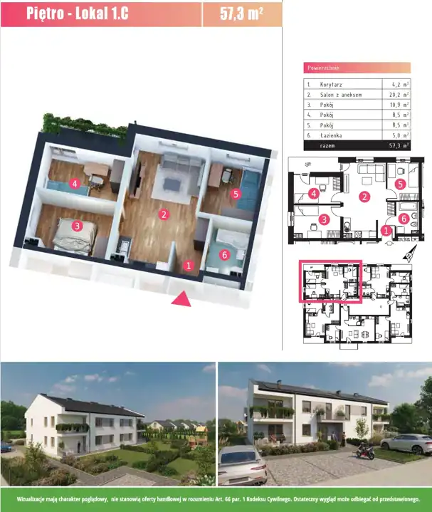 - Charakterystyka mieszkania 57.3 m2, 4 pokoje