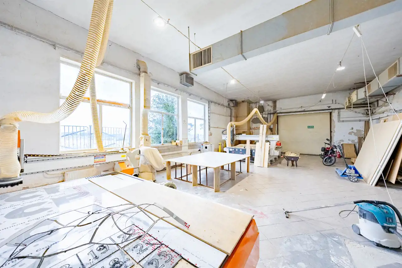 - Media: woda, kanalizacja oraz prąd o bardzo dużej mocy 230 KW, pozwalający na podłączenie nawet najbardziej wymagających maszyn.