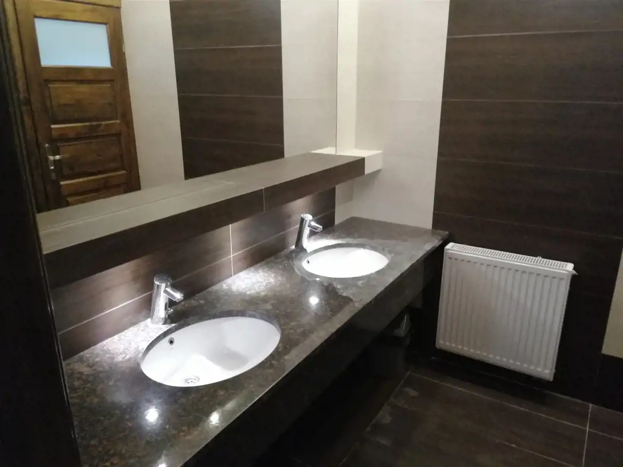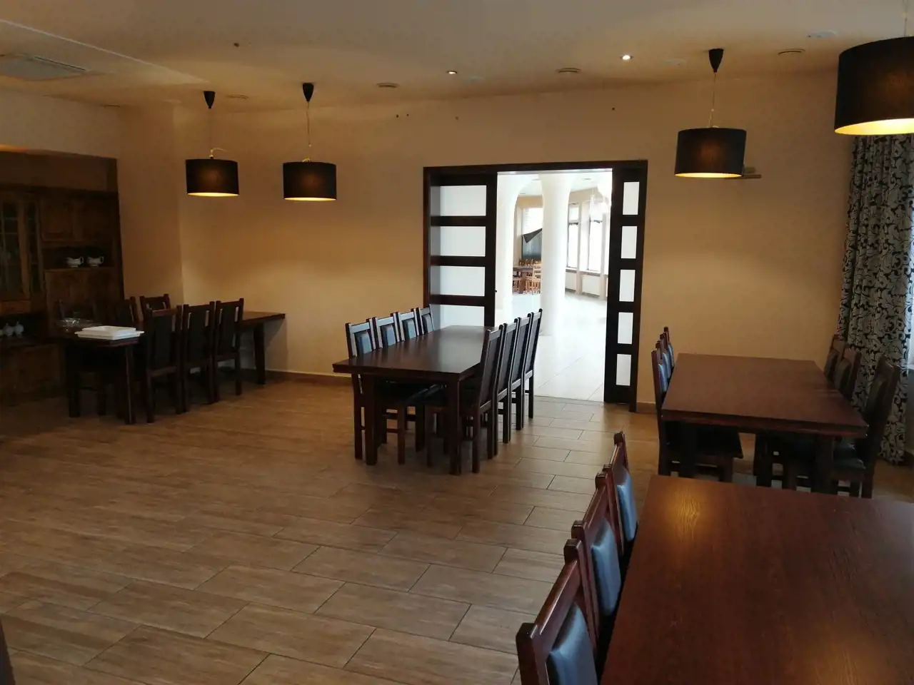 Na piętrze urządzone jest 10 pokoi hotelowych z łazienkami. Ściany gipsowane, malowane. Łazienki wyłożone płytkami ceramicznymi, wyposażone w kabiny natryskowe.