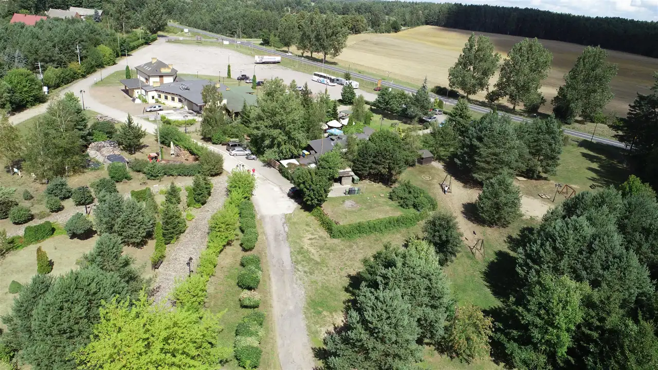 Przy parkingu zlokalizowany jest budynek baru (75m2), wolnostojący o konstrukcji drewnianej, bez podpiwniczenia, kryty gontem bitumicznym. Podłogi wewnątrz budynku wyłożone płytkami ceramicznymi, ściany i sufity baozeria.