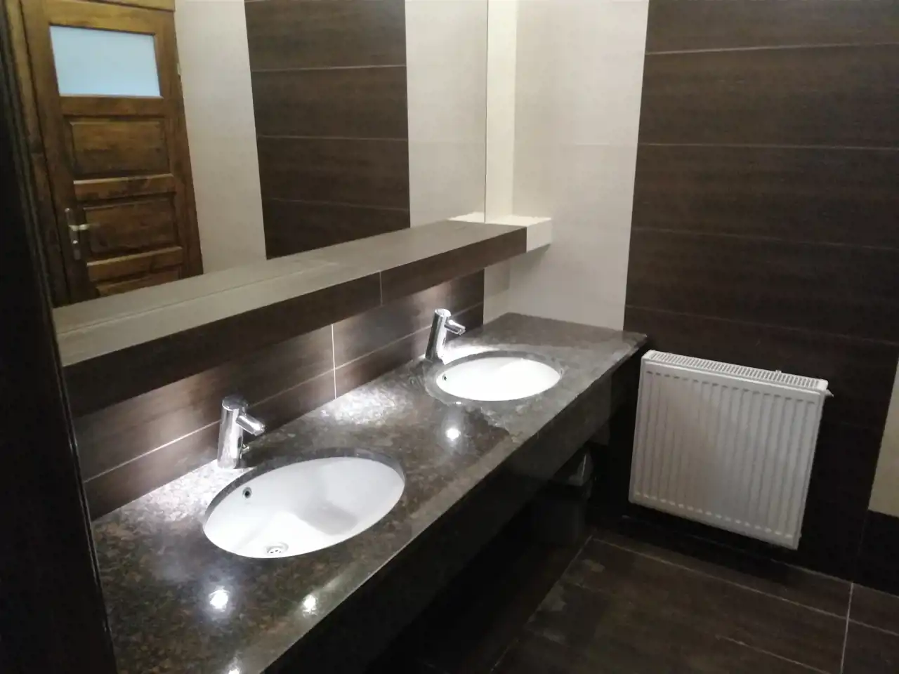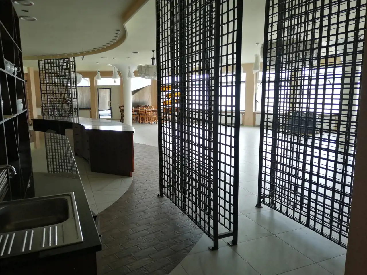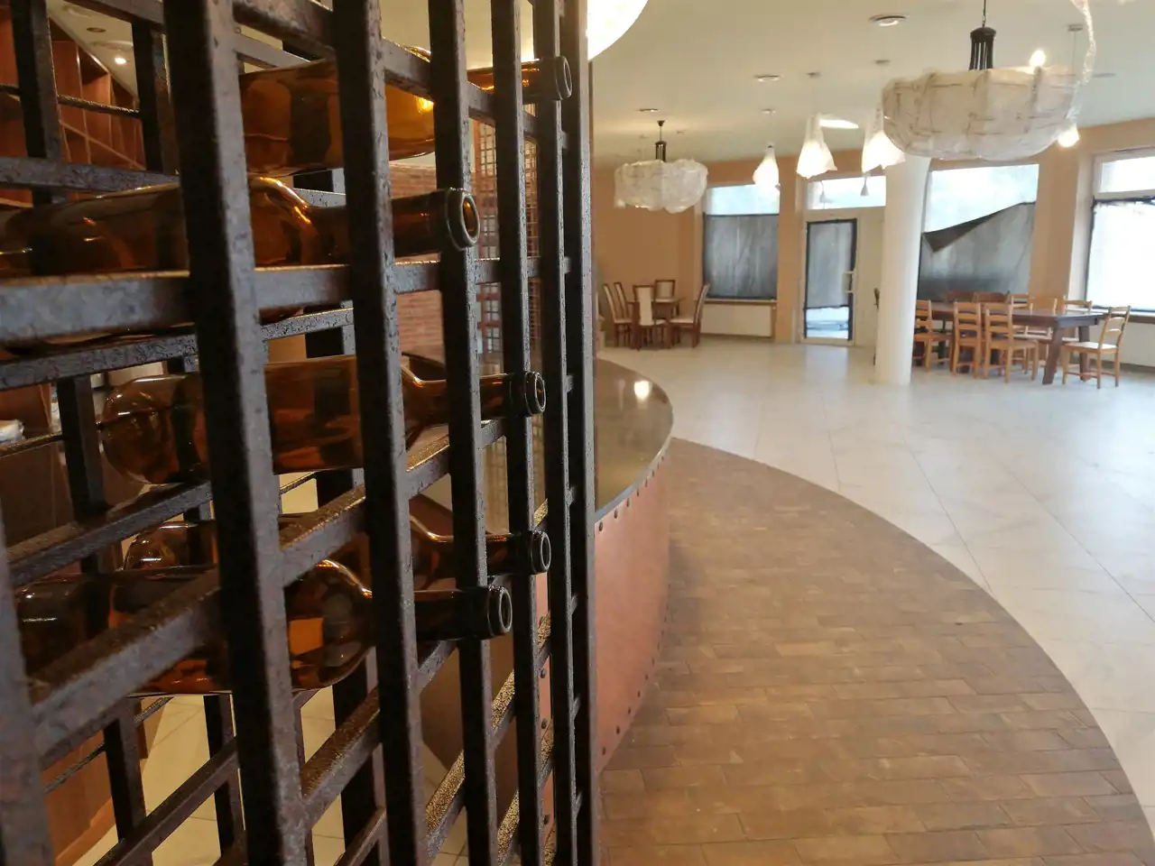 Na parterze zlokalizowane są sale restauracyjne dla 80 gości, wyposażona kuchnia z zapleczem kuchennym, zespół sanitariatów dla gości. biuro. Obiekt w trakcie wykańczania -podłogi płytki ceramiczne, ściany gipsy, tynki ozdobne podświetlane. Bar wykończony stylowo w metalu. Uwagę przykuwa wykonany na zamówienie regał (ściana) na wina.