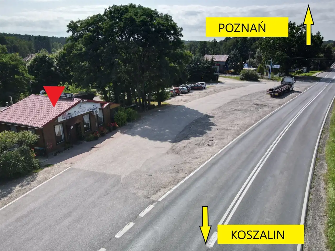 Oferujemy na sprzedaż nieruchomość, którą stanowi działka o powierzchni 783 m2 zabudowana budynkiem Auto - Baru, który jest w pełni wyposażony i sprawny technicznie. Bar jest otwarty cały rok i ma stałą bazę klientów z okolicy oraz z przejeżdżających turystów. Posiada doskonałą lokalizację - znajduje się przy drodze krajowej nr 11 prowadzącej do Koszalina, z dużym natężeniem ruchu, zarówno dla turystów jadących nad morze jak i transportu ciężarowego. Bar jest łatwo widoczny i dostępny z drogi, a przed budynkiem znajduje się parking dla gości, przystosowany również dla samochodów ciężarowych. To duży atut, który przyciąga klientów. Bar jest sprzedawany z całym wyposażeniem, które obejmuje m.in.:
