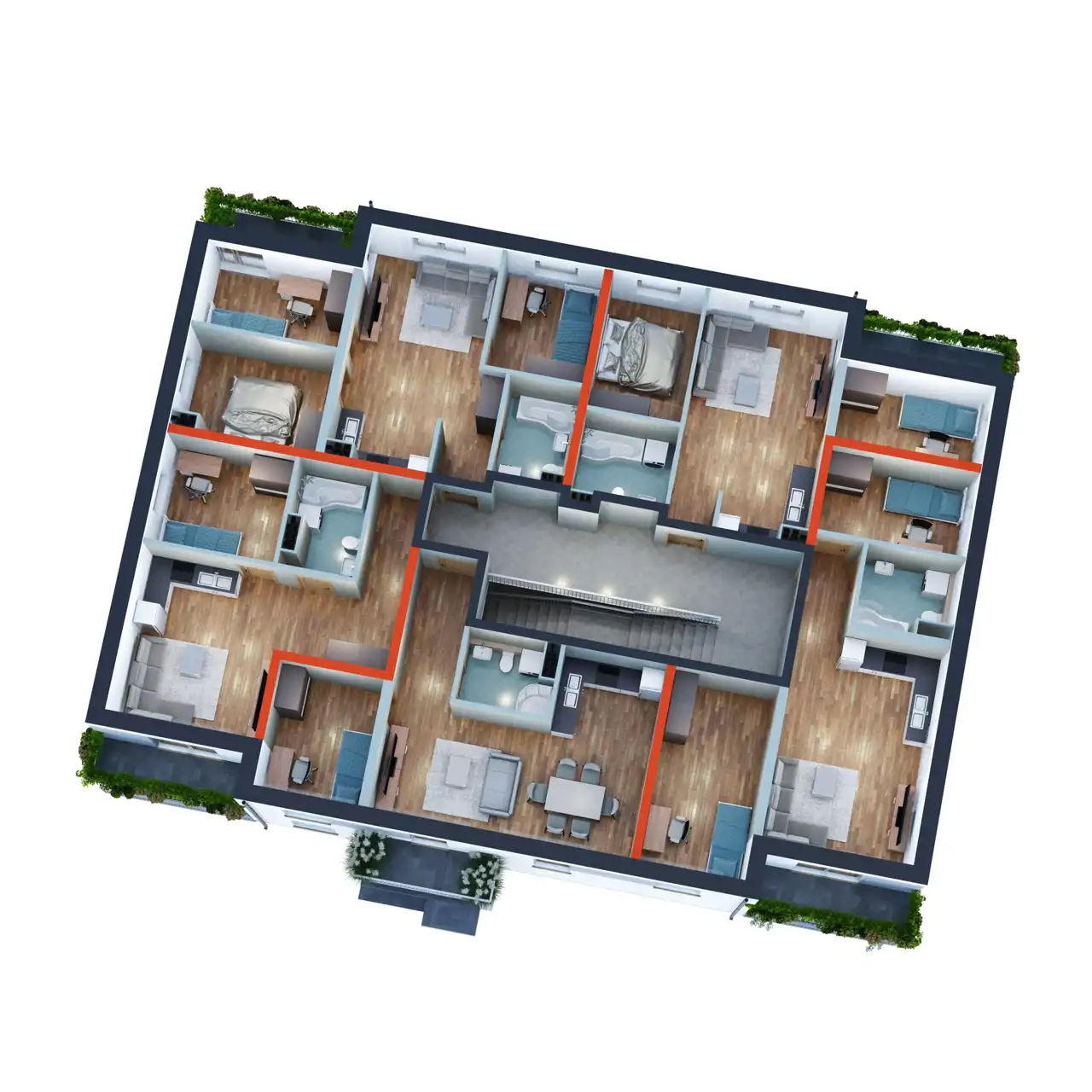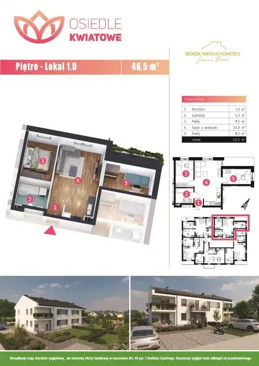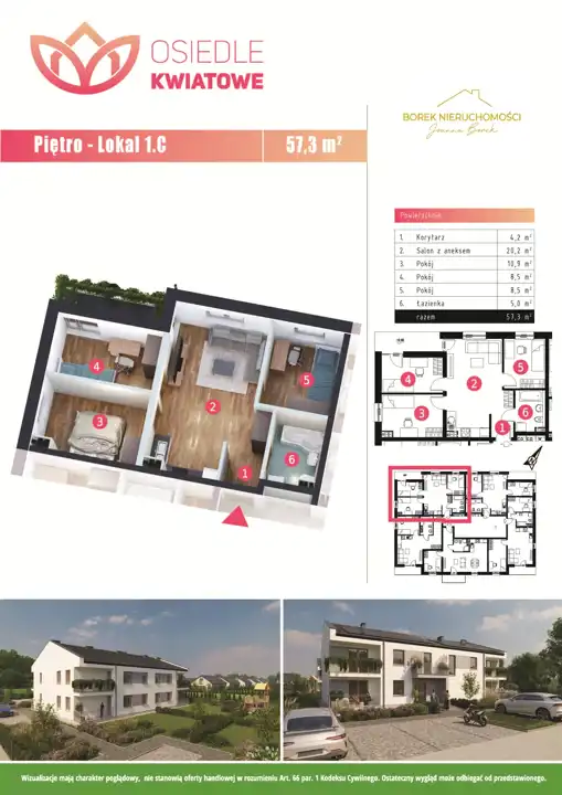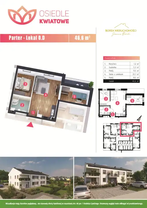 W ofercie dostępne są mieszkania o metrażach od 30 m² do 60 m² w cenie 6500 PLN/m² , zarówno na parterze, jak i na pierwszym piętrze. Budynek zaprojektowany został w standardzie pasywnym – gwarantującym niższe koszty eksploatacyjne i komfort cieplny przez cały rok.