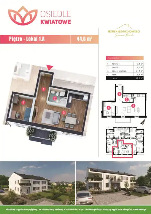 - Charakterystyka mieszkania 44 m2, 2 pokoje